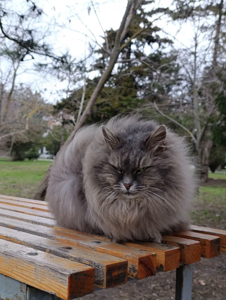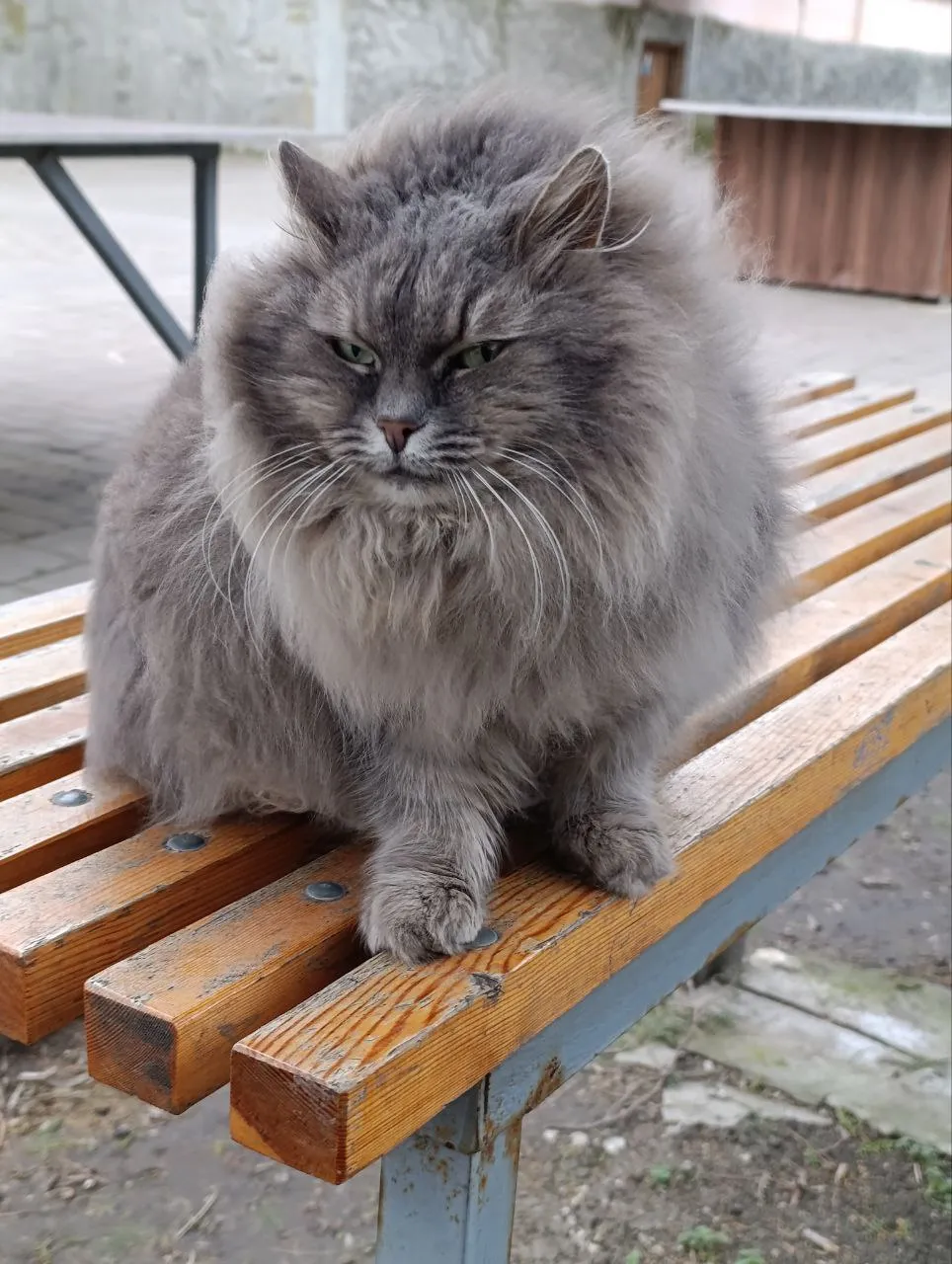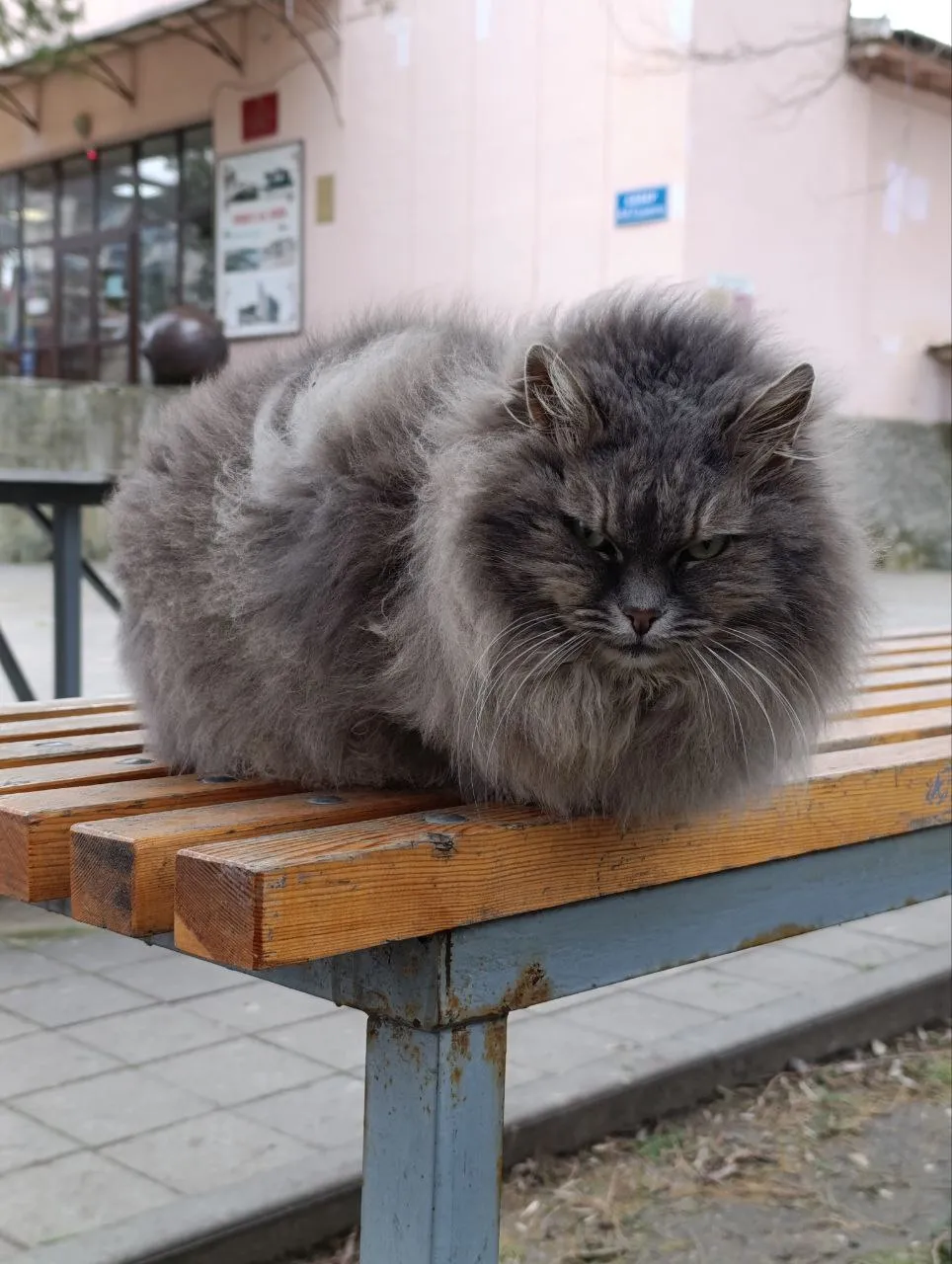 Да он добрющий, по нему видно. Просто котя скорее всего в почтенном возрасте уже, поэтому лицо хмурым кажется )