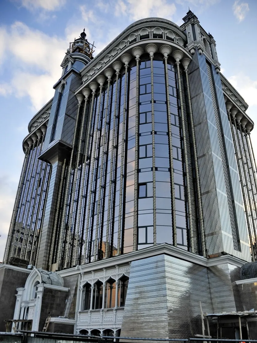 Меня восхитила ювелирность, с которой в этом здании сочетаются строгость классики, национальный колорит, тонкая возвышенность и дух современного мегаполиса, воплощённый в стекле и бетоне. Нагуглив это здание по фото, я с удивлением для себя обнаружила, что оно принадлежит руке того же архитектора, что и Дворец земледельцев. А значит я обязана вам о нем рассказать. 😉