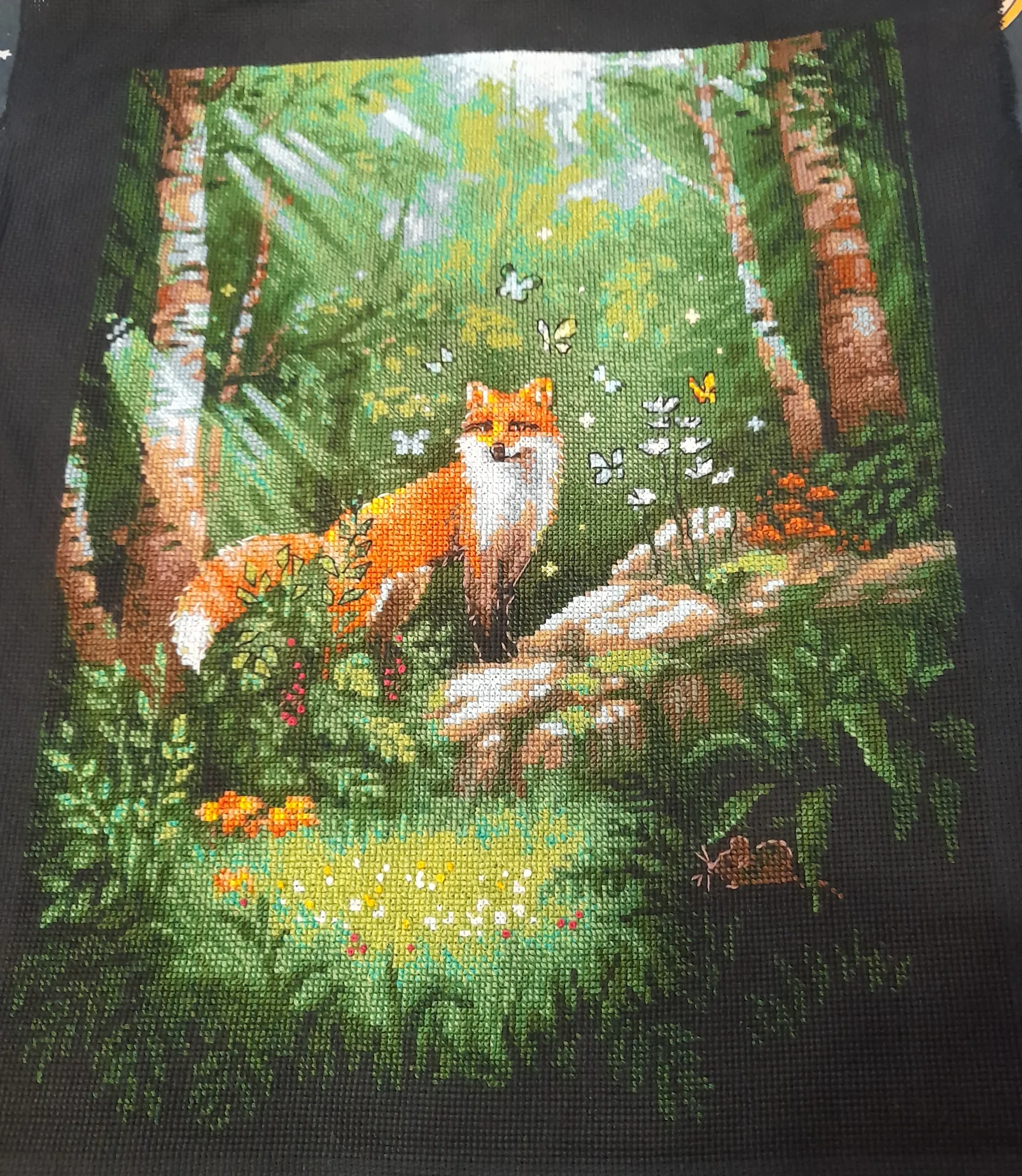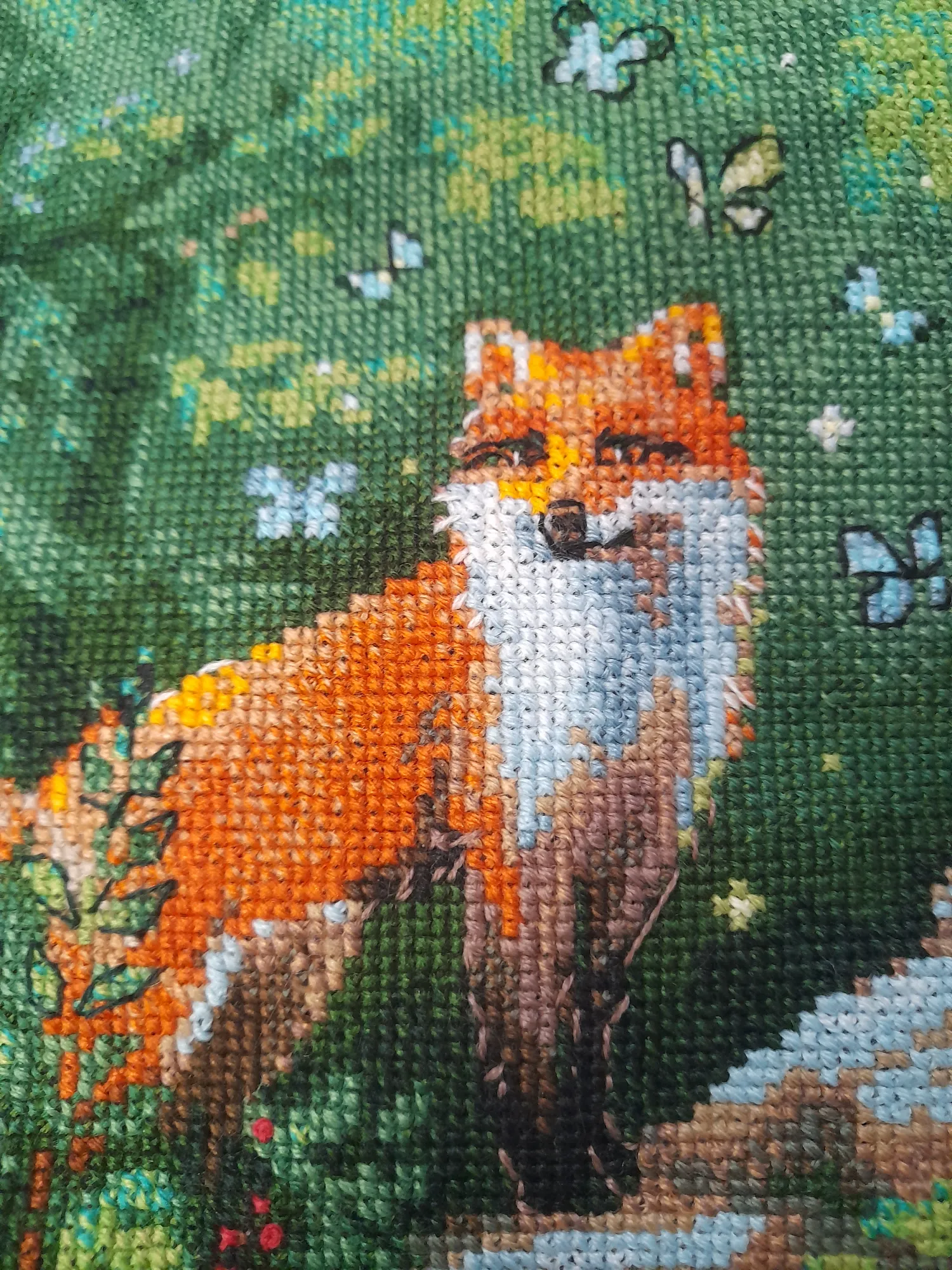 Да, я на этого оленя с любовью поглядываю. Я долго выбирала, что же вышить в первую очередь, лису или его. Но лиса поярче, и мой выбор пал на нее. У меня все вышивки шерстью, я обожаю ей вышивать, они получаются объемными и шьются легко