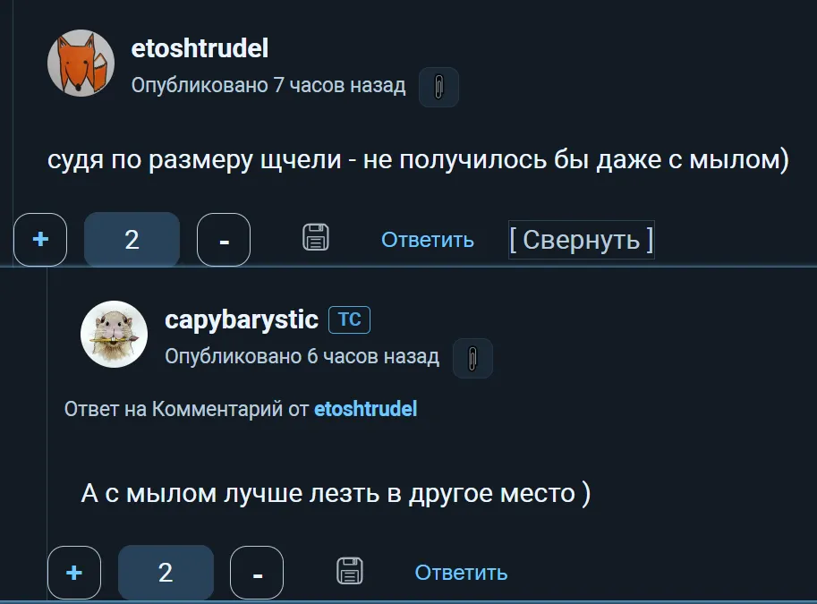 Редакция напоминает, что если вы стали свидетелем уникального поста, невероятно смешного комментария или странного события на сайте - немедленно вызывайте наших корреспондентов @vervolph, @Kukabara, @CircusBirdEli, @Pepels, @kimpokom.