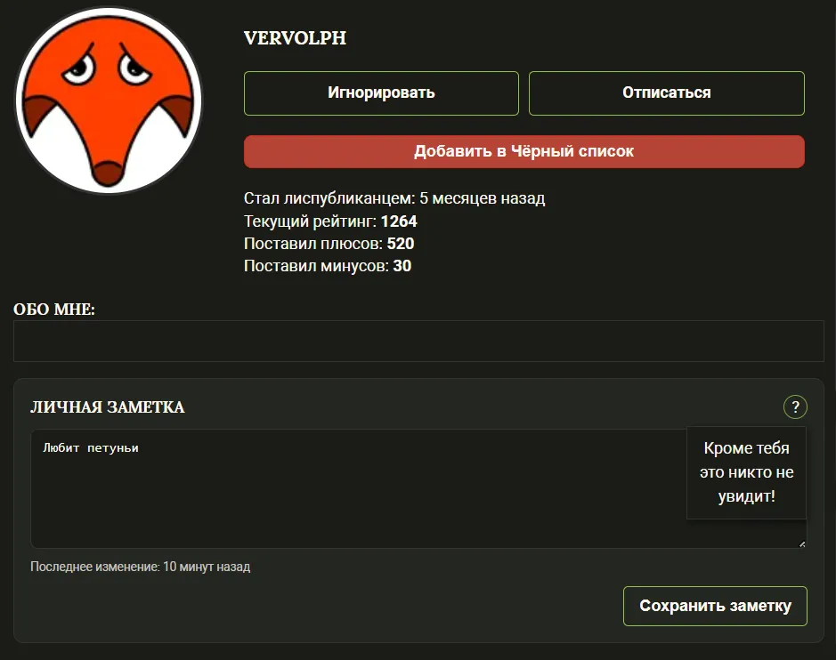 3. Личное досье: ну а чтобы ничего не забывалось, разработчики… э-э-э… предоставили вам возможность вести собственные заметки о других пользователях. Считайте это вашим личным компроматом или просто памяткой.