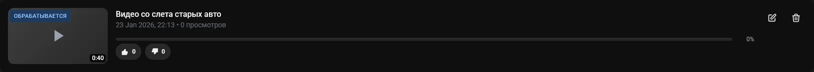 @NapalmRainвсе очень круто, искренне уважуха. Я тут видео решил залить только. Оно залилось, но уже обработка идет 50 минут и прогресс-бар на нуле обработки. Это так и должно быть? Видео mp4, полторы минуты, 36 метров