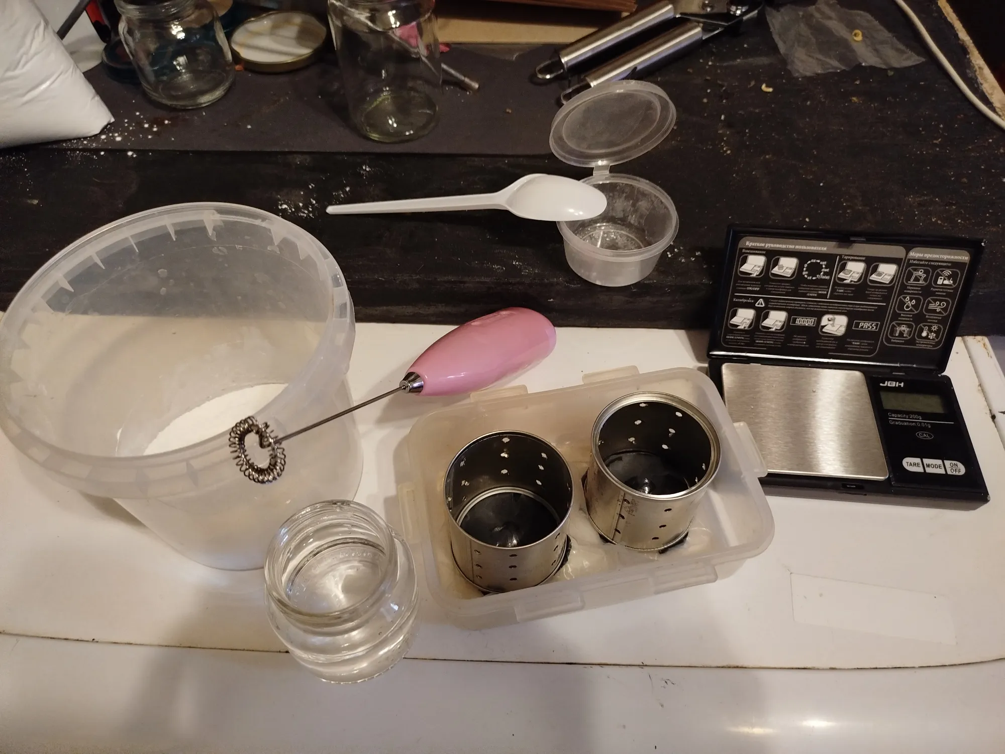 8. инвентарь: весы, емкости для смешивания, пинцеты, скотч, титановая палочка, салфетки, крышка, пластилин, перчатки.