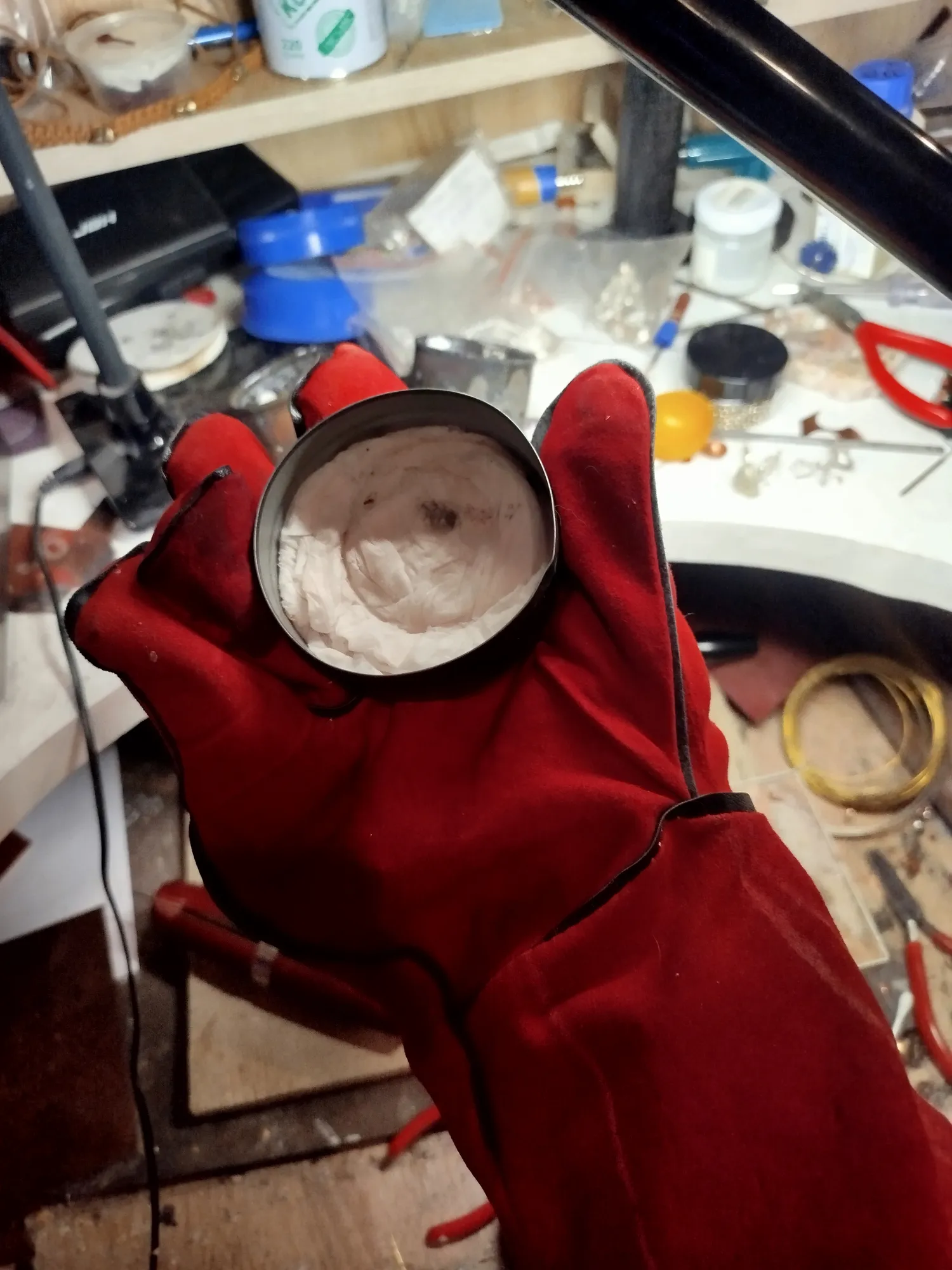 Отсыплю буры. Онаже тетраборат натрия. Меньше шлака и газов в рассплаве будет и литье чище следовательно. Добавлять по паре щипоток при расплаве металла. Но плавить в отдельной ёмкости. Шамотную глину на тигельки тож выделю. Пары кило на много хватит) как лепить и обжигать тож научу(делаем такие но на многа литров, для второй печи, под цвет или хрусталь)