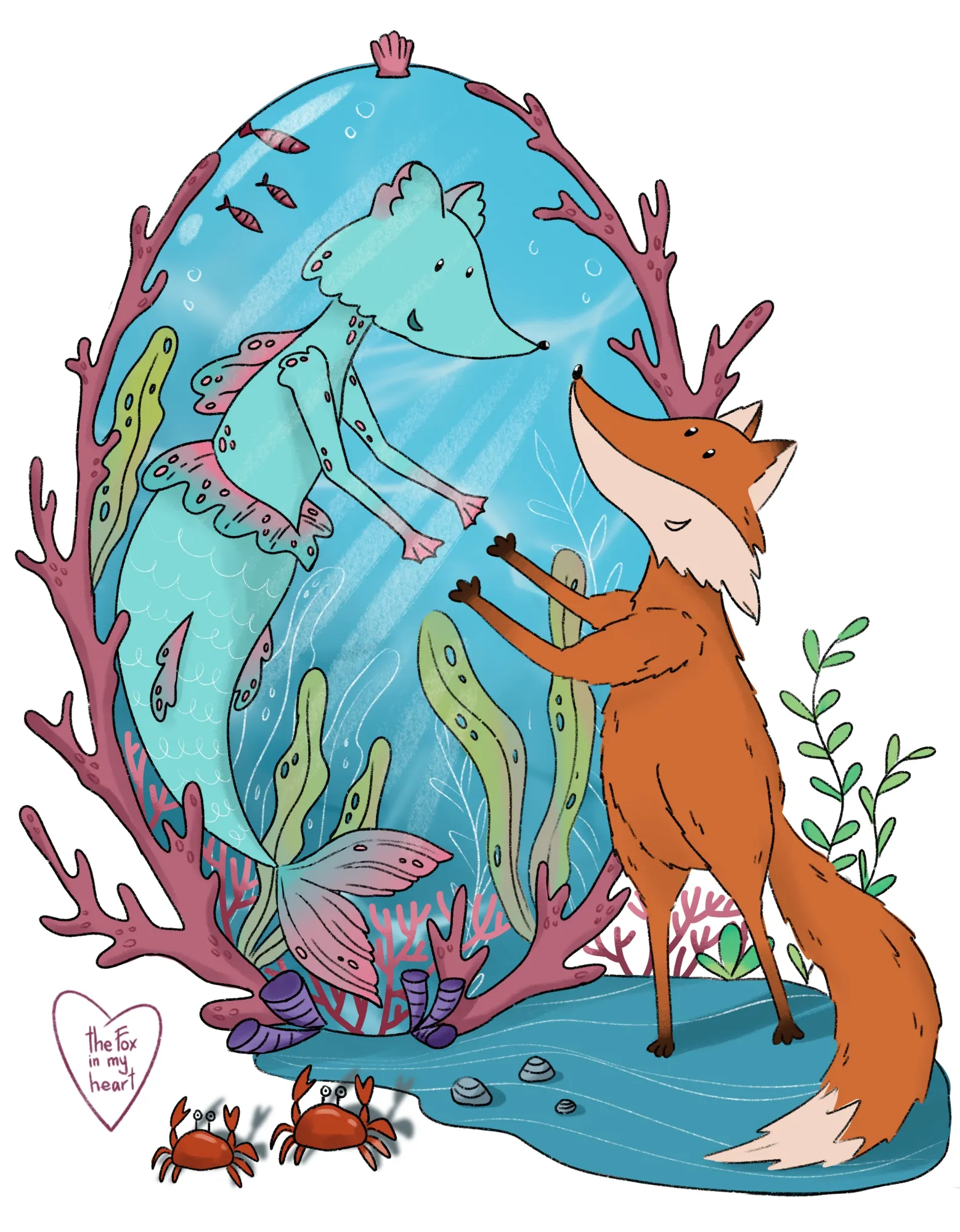 Лису привели крабики, к тайному зеркалу в коралловой раме, что бы познакомить с морской лисицей.)