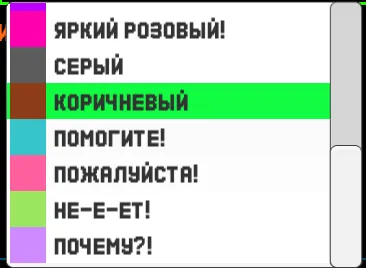 игруха одна есть, там когда цвет персонажика своего выбираешь, поначалу идут адекватные названия цвета, а потом вот такое: