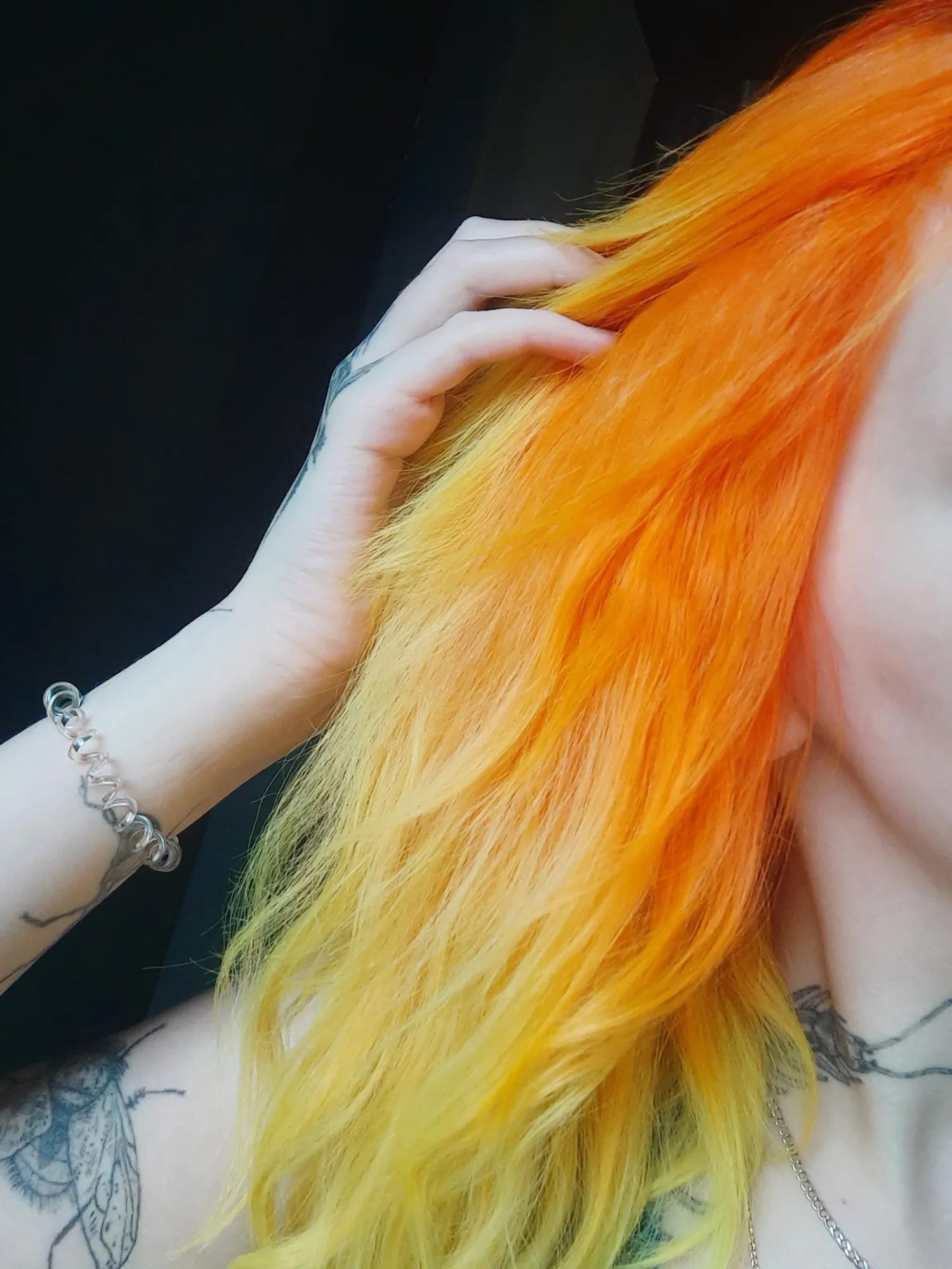 я в зеркале себя тож не узнаю уже без цвета... синий и зелёный оч нравятся, но будто бы мне не так идут, мне кажется. щас в красный вот ебанула вчера)