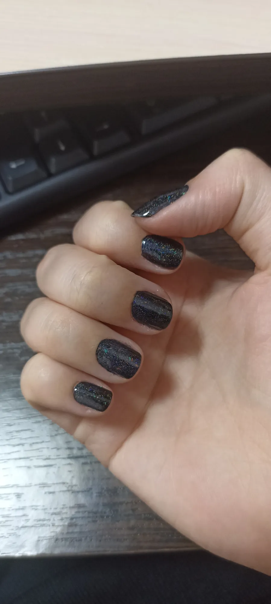 Смари, ты спрашивала. Это один слой того дискотечного лака поверх одного слоя чëрного.