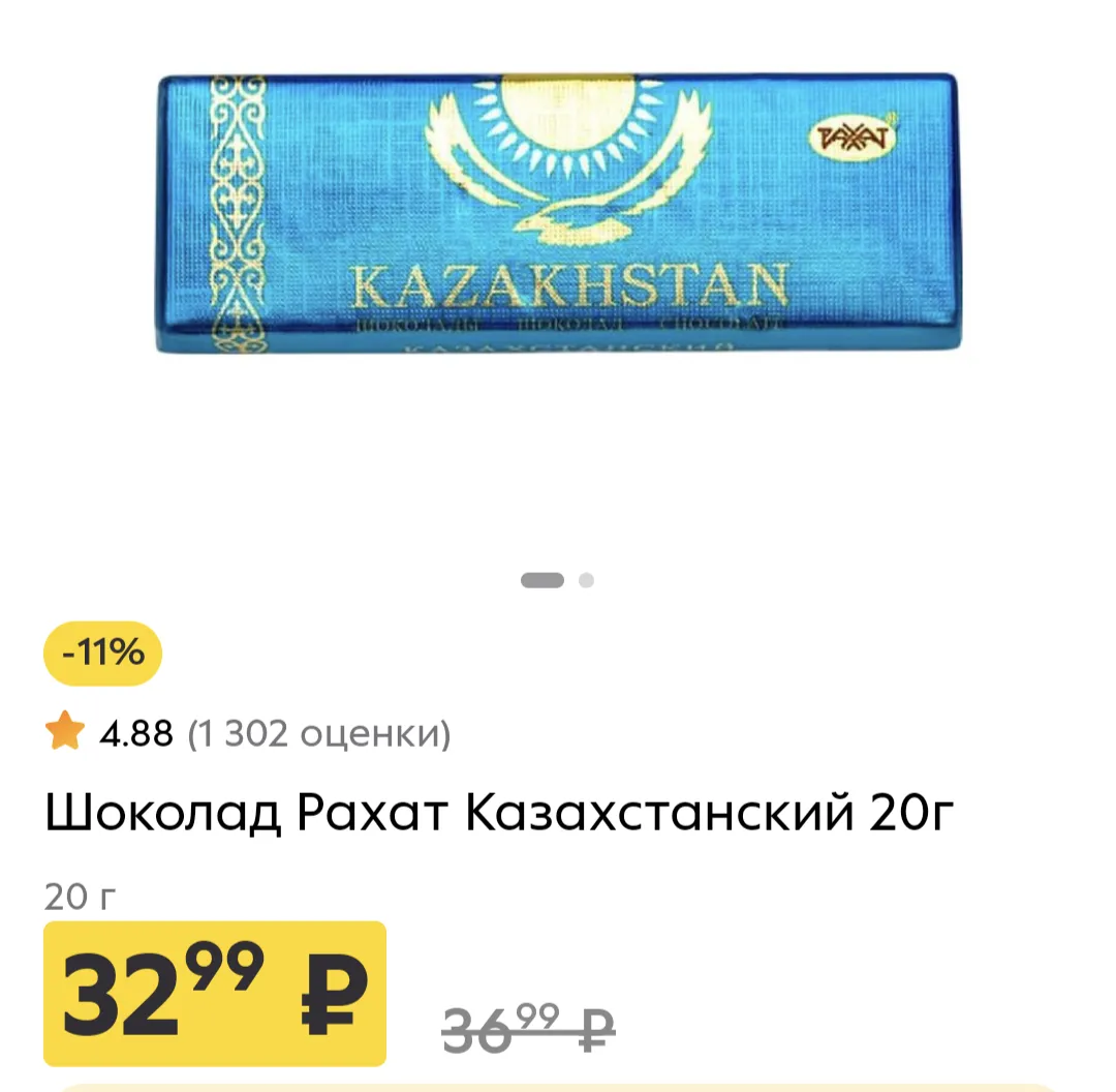 Я вчера в магазине разглядывала такую мини-шоколадку Казахстан. Но показалось, что дохуя просят за такую маленькую))