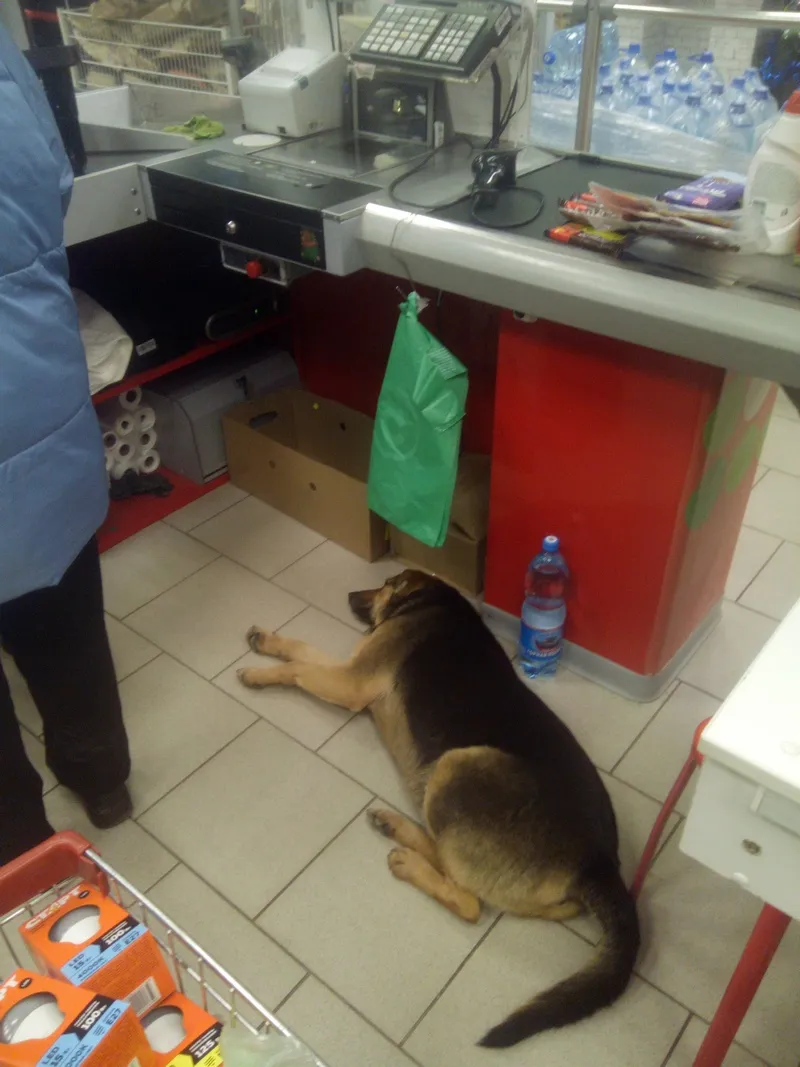 Не обязательно собираться в таком количестве. У нас в магазине тоже бесхозная псина лежала. Потом кинулась на какого-то дедушка. После чего приехали двое мужчин и увезли собачку в неизвестном направле...