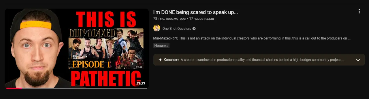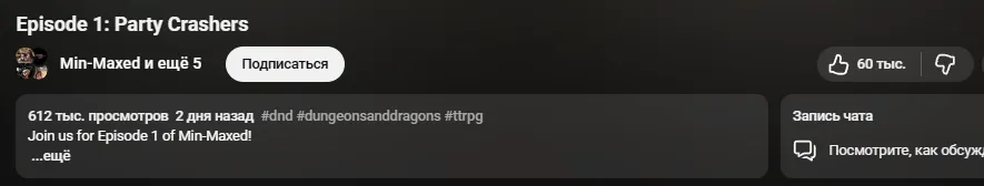 Словом, посмотрим, что будет... Но, да, для меня лично тайминг премьеры эпизода сложился неудачно: я буквально прервал просмотр Critical Role: Vox Macina и прыгнул на стрим MinMaxed, поэтому невольно посмотрел на их дебют через призму уже устоявшегося к тому моменту профессионального шоу и не выдержал более 5 минут.
