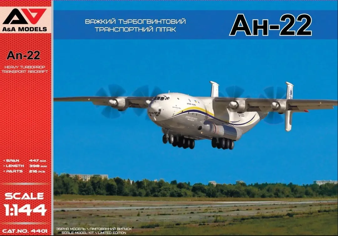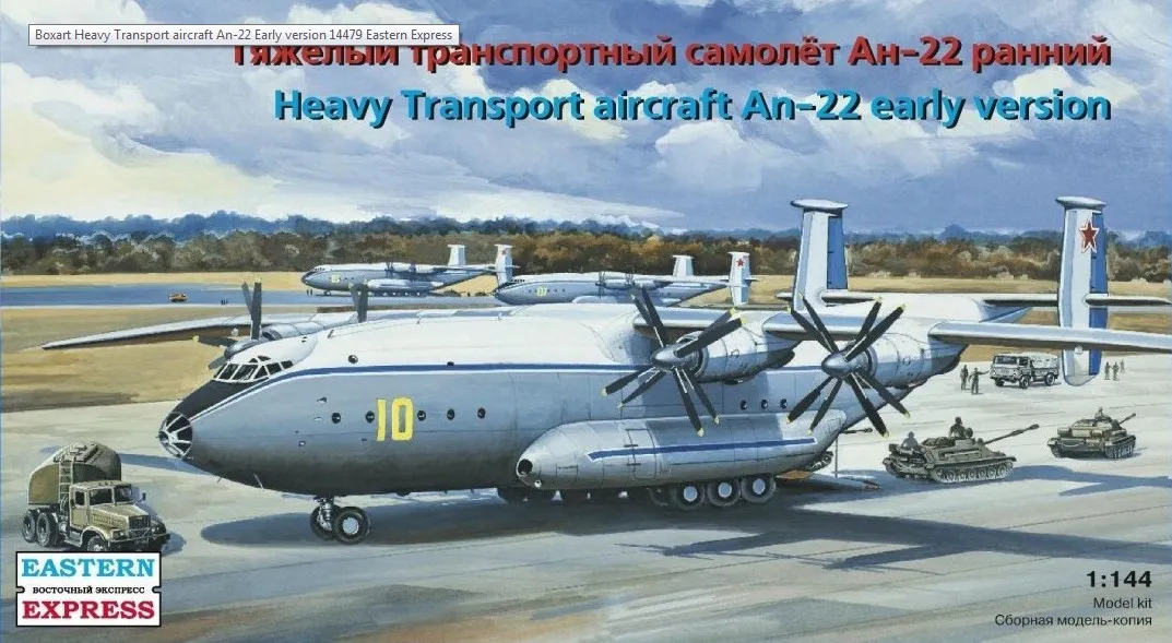 Спасибо!:) С Ан-22 как именно с набором для самостоятельной сборки всё очень и очень туго. Собственно он выпускался как модель всего двумя производителями: одной украинской фирмой, в ограниченной серии. И российской фирмой Восточный экспресс. Обе модели в масштабе 1 к 144.