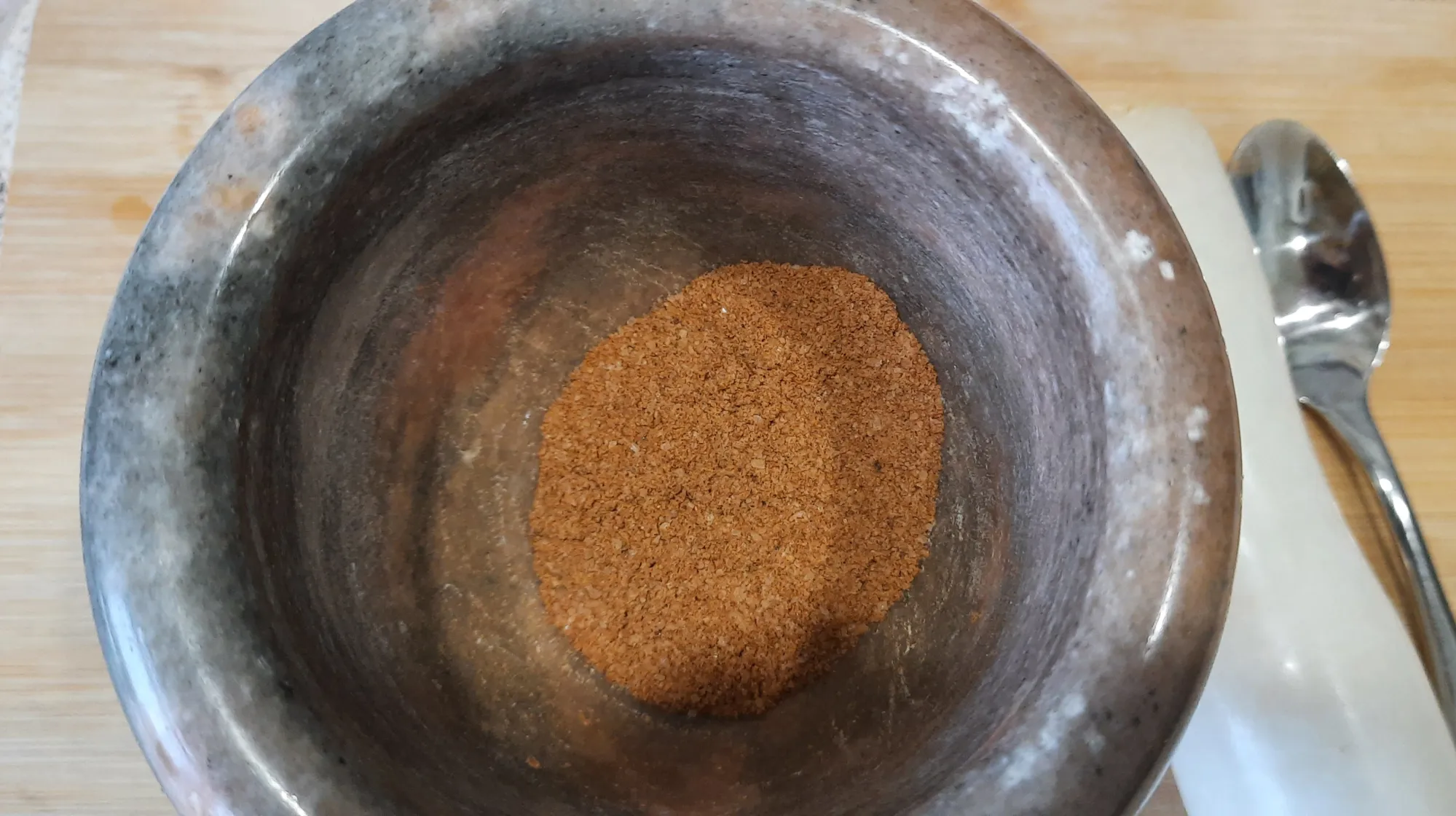 Туда же добавляем чайную ложку паприки, совсем немного сахара и хорошую щепоть крупной соли. Всё перетираем.