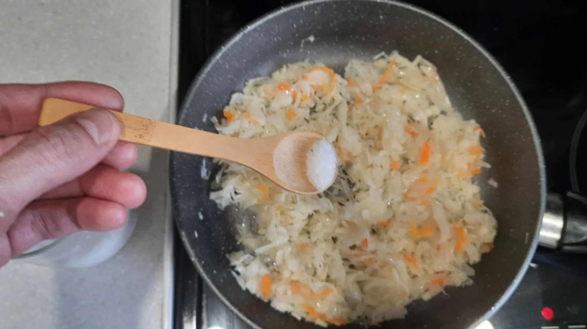 В капусту на этом этапе я так же добавил немного соли и немного сахара.