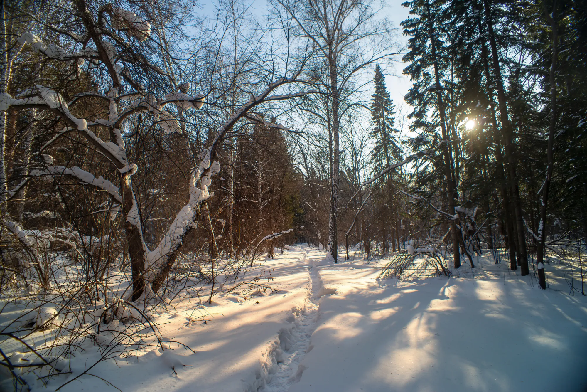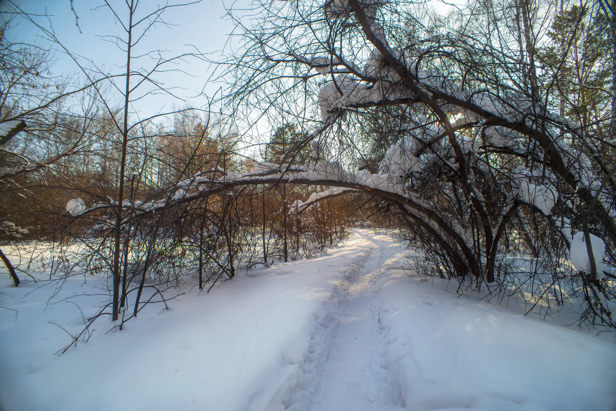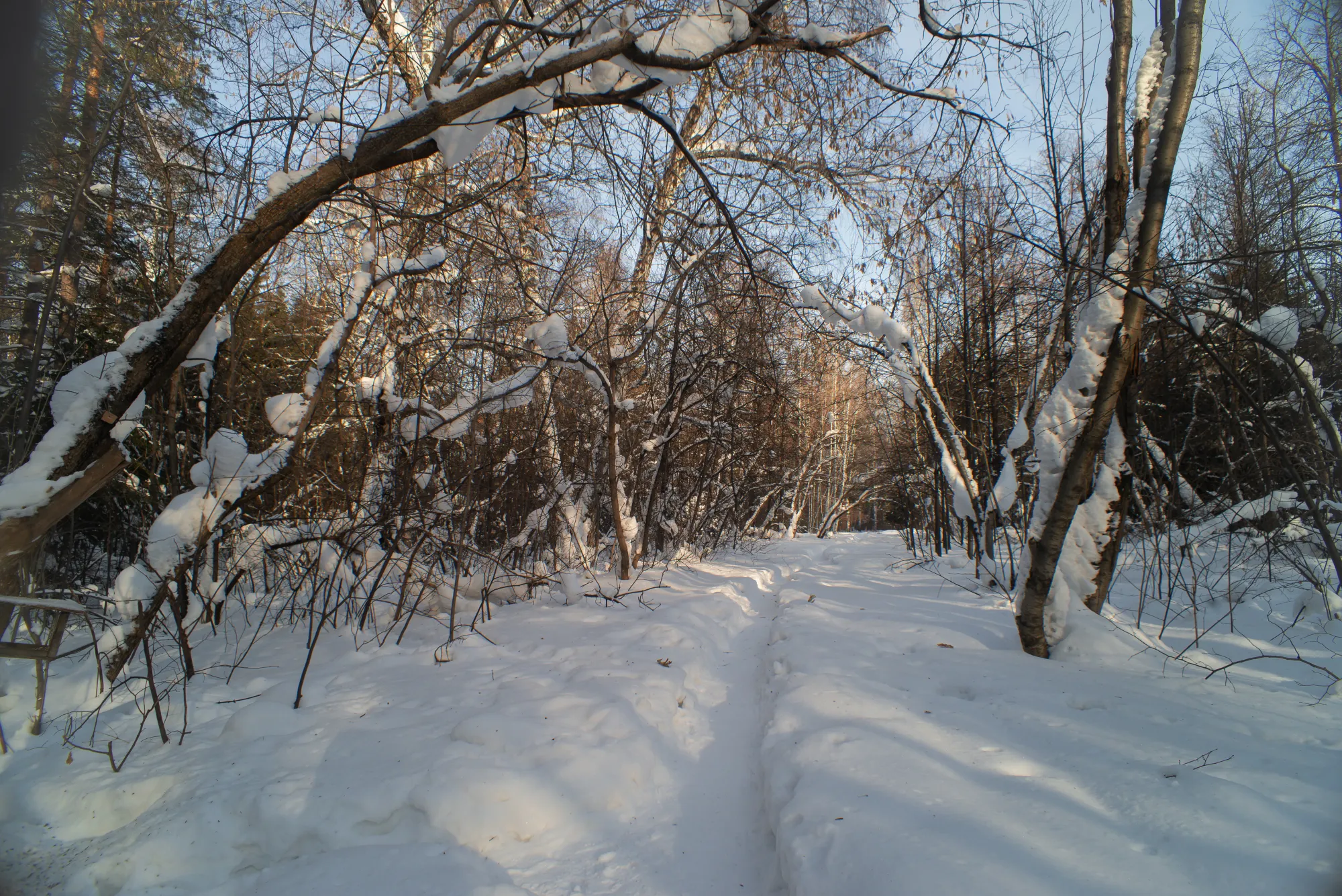 Ну, сторого говоря, не так чтоб уж прям в лес. В Новосибирский дендропарк. Огромный и полудикий. Дядя Слава про него уже как-то рассказывал. Но я залез совсем в глушь, и зимой:) Заварил в термосе чаю с ромашкой и вперёд дышать воздухом:)