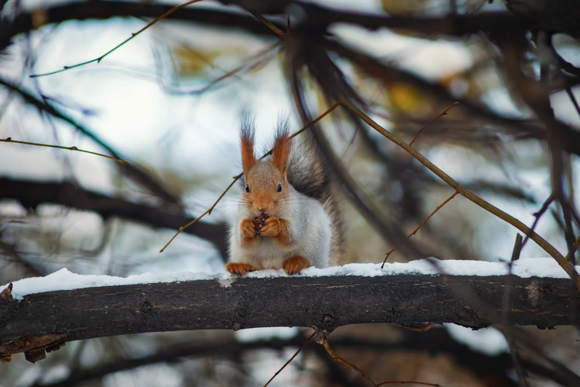 Красиво. Природа, снег, белочки!