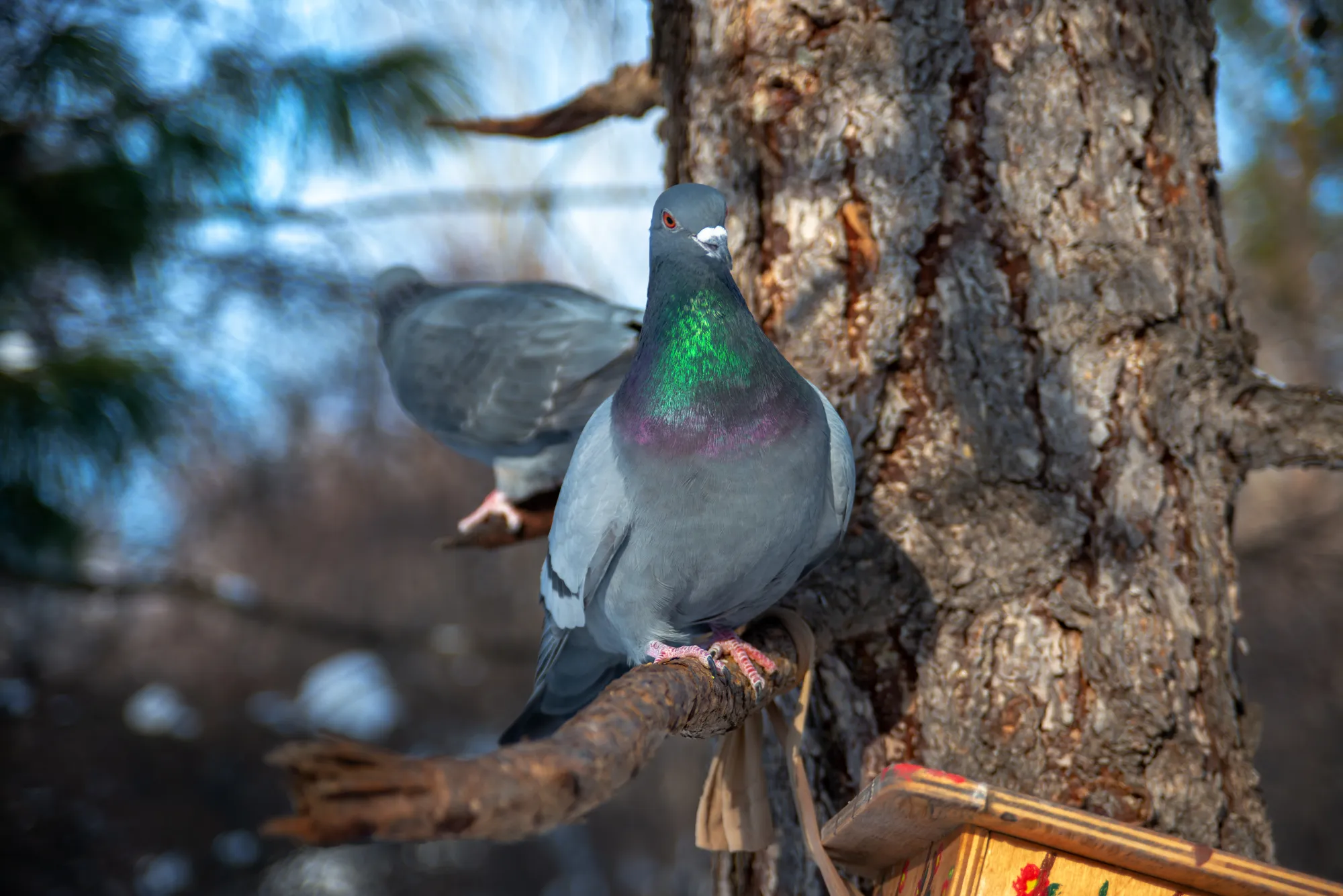 Ближе к центральным аллеям и беличьим кормушкам водится много голубей, их тоже поснимал. Теперь у меня есть легальный повод постить на Лиспублике фото с голубями. Это не просто банальные фотки, а референсы для @capybarystic. Вдруг ей для рисунков понадобятся ещё крупноплановые фото летающих крысок:)