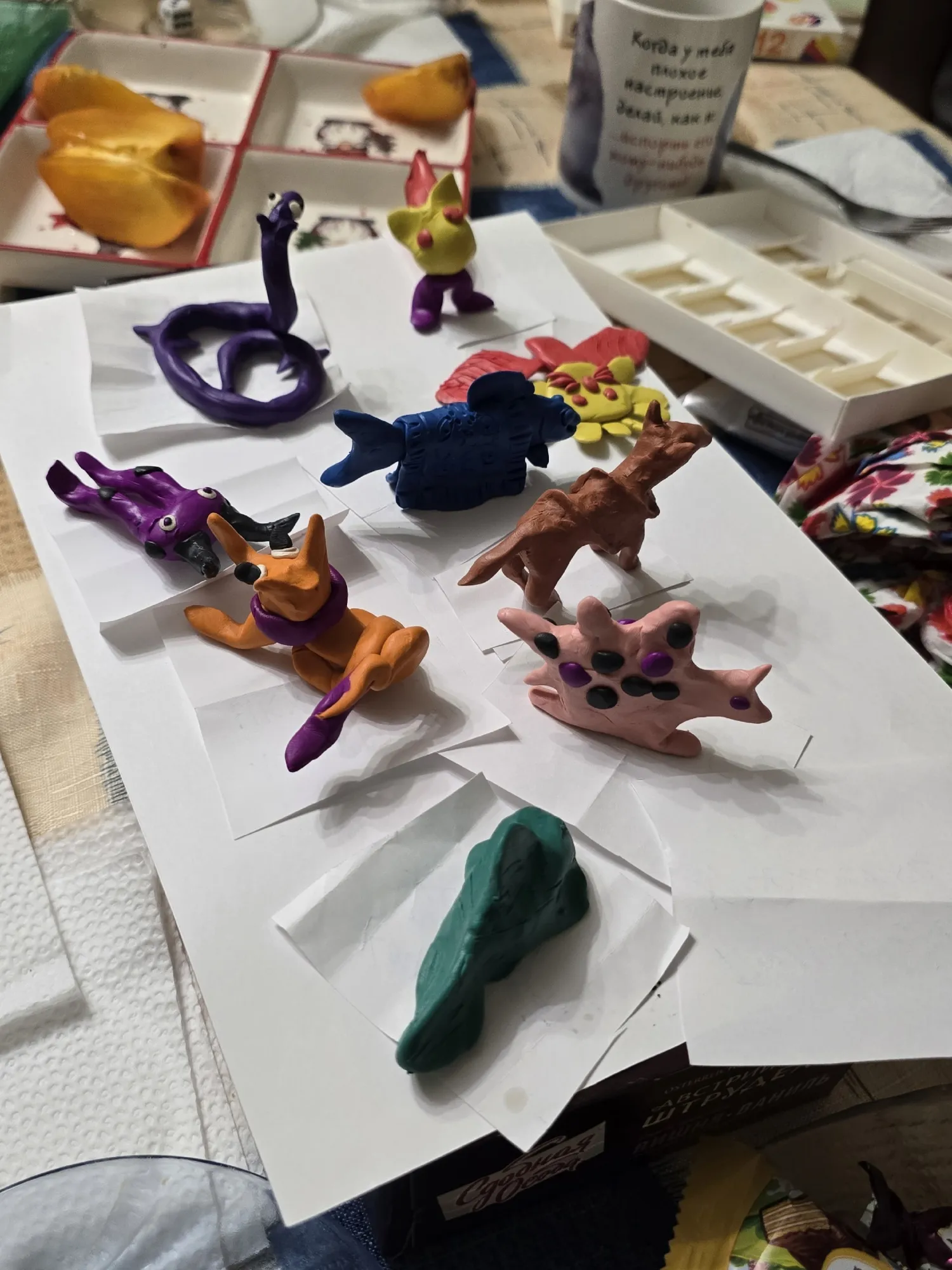 Далее ставится таймер на 10 минут и каждый за это время лепит животное, название которого ему досталось.