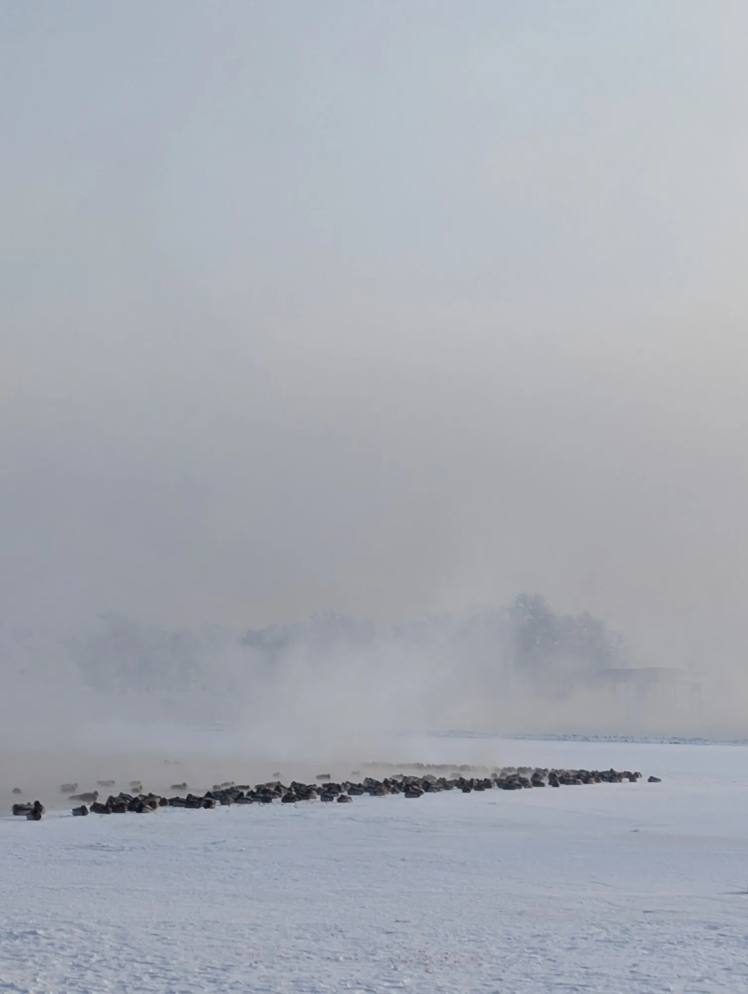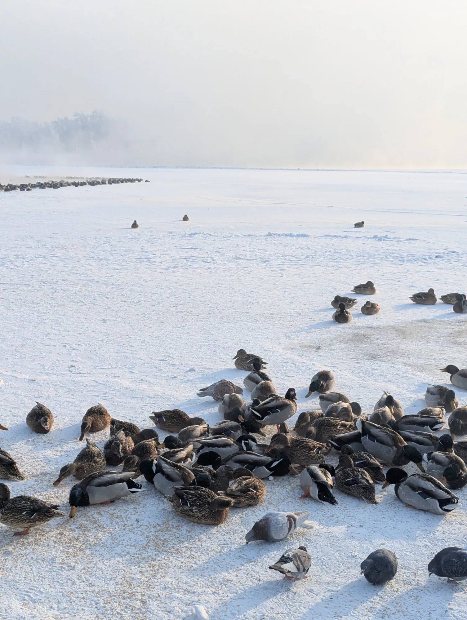 Близко не подходила, там лёд тонкий) Но небольшая группка покормиться подошла