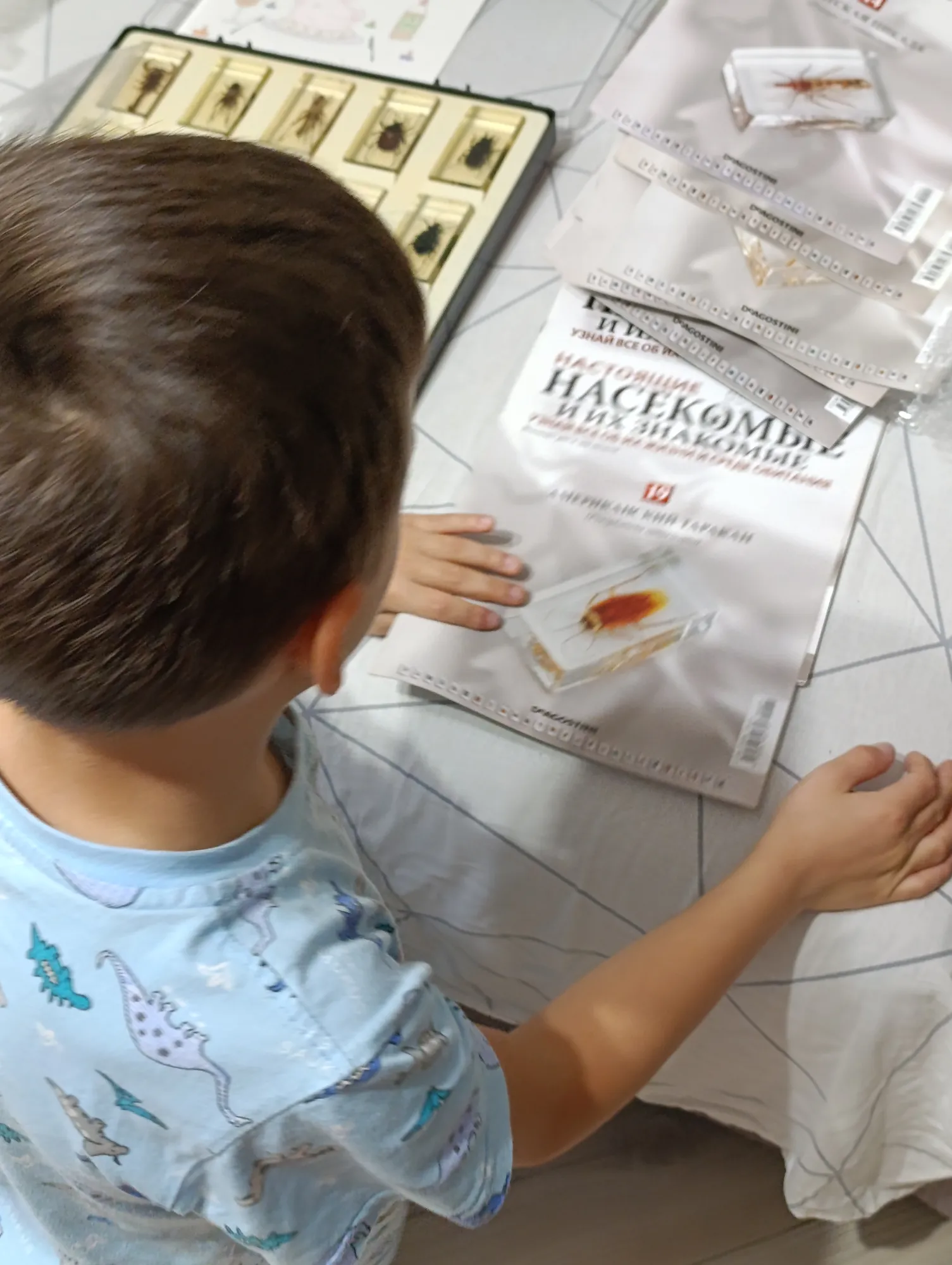 Этот экспонат вызвал телячий восторг малого. Он без отрыва рассматривал каждое насекомое, читал про него вот эти книжки, что шли в комплекте. И с неподдельным интересом и восторгом наслаждался вот этими чудесами
