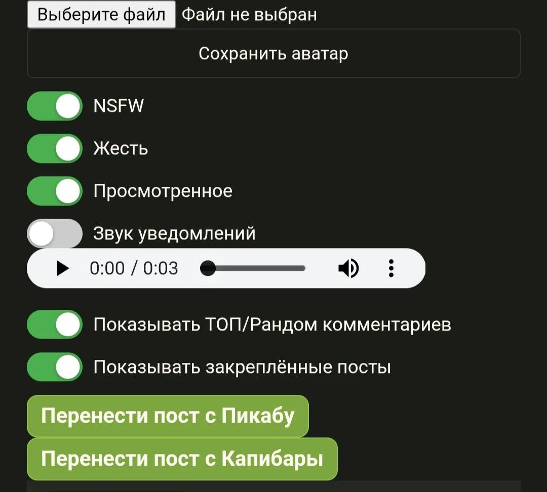 Ещё добавились настройки по скрытию рандома комментариев, закрепа, и состояние закрепа теперь запоминается - если он был свёрнут, то теперь он свёрнут всегда.