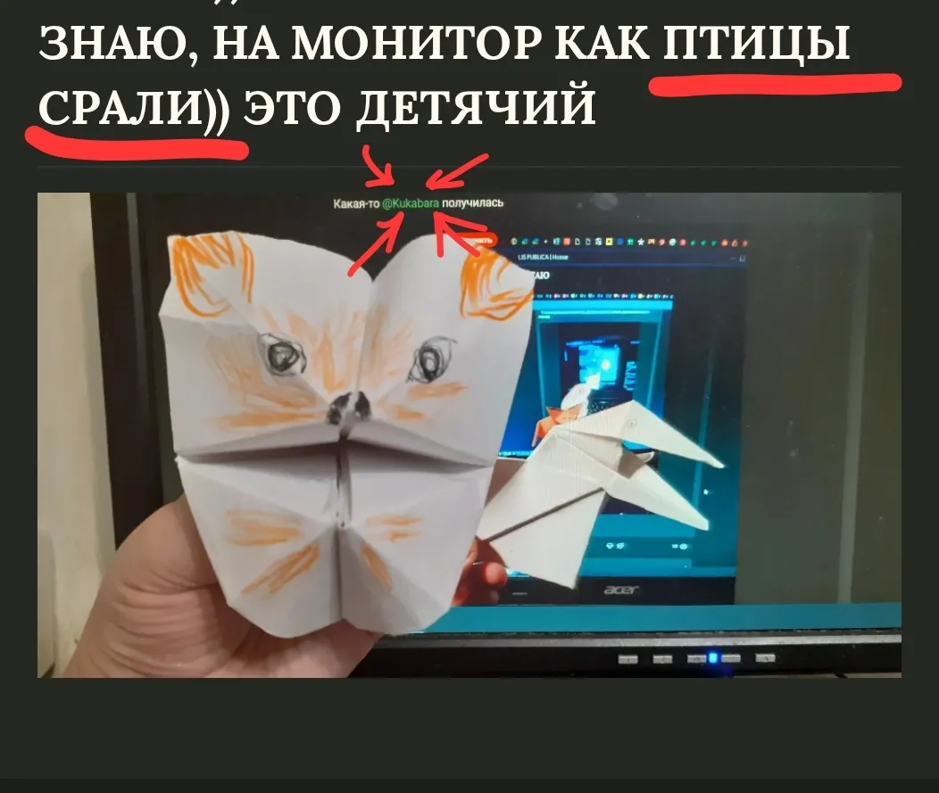 etoshtrudel Опубликовано 4 дня назад [моё] Оригами Упоротый лис Ну, предположим, тоже лиса)) знаю, на монитор как птицы срали)) это детячий Читать дальше...