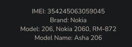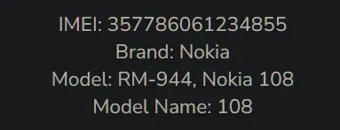 Проверка по базе imei показывает, что TAC-часть имея - от Нокии 108 (модель RM-944).