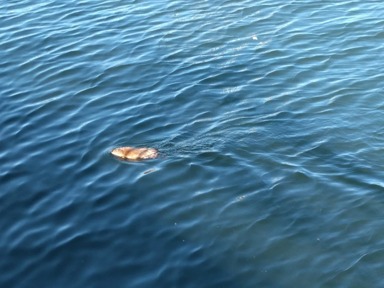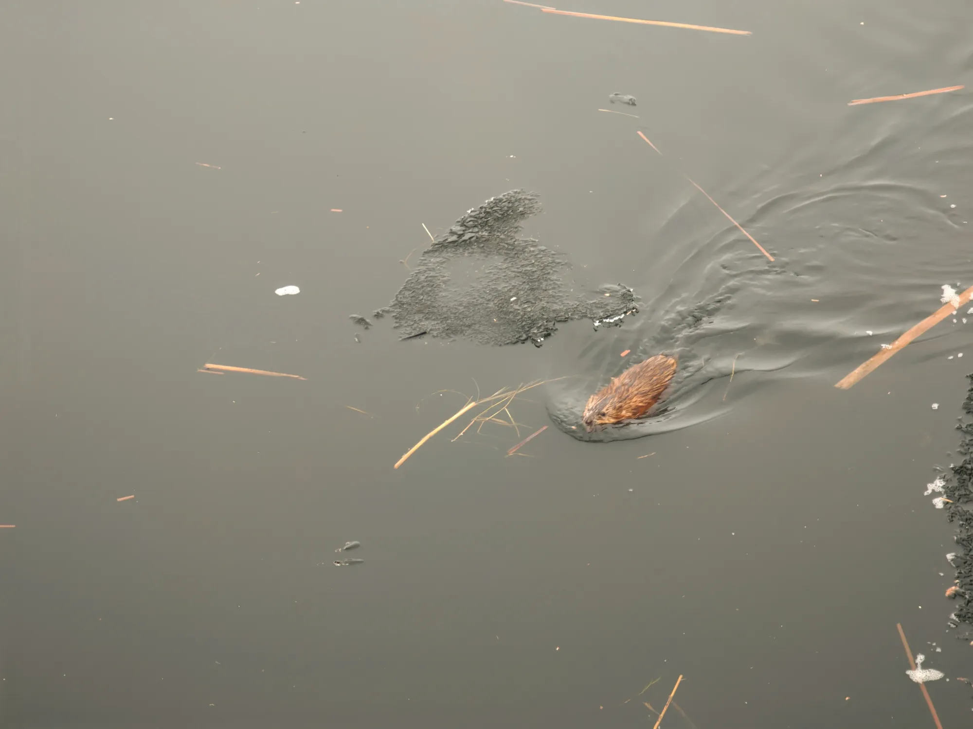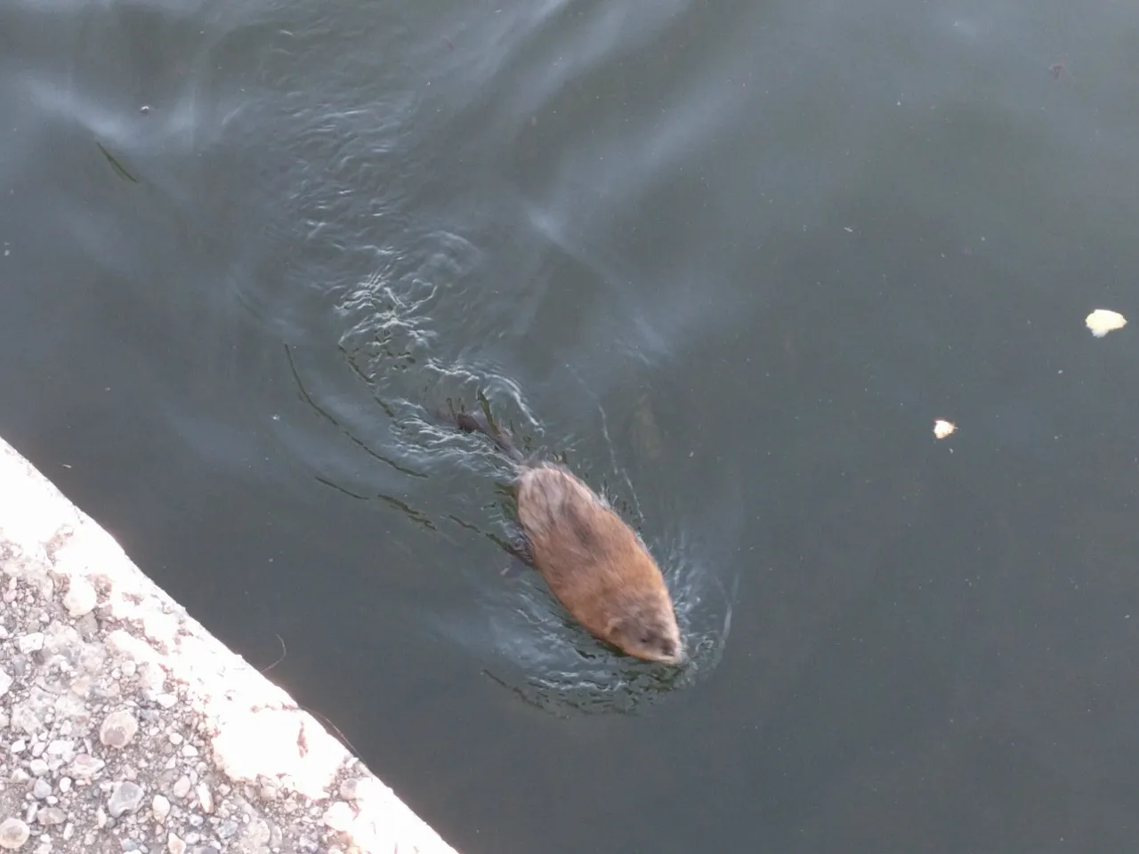 Завелись у нас на набережной ондатры. Сперва мы подумали даже, что это одна и та же в разные дни, но потом одновременно их видели в двух разных частях берега.