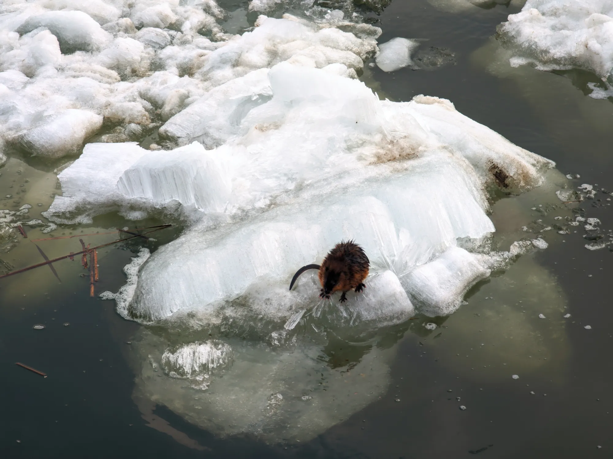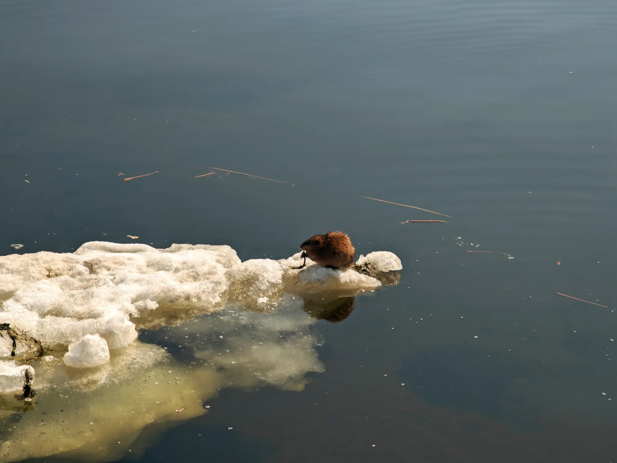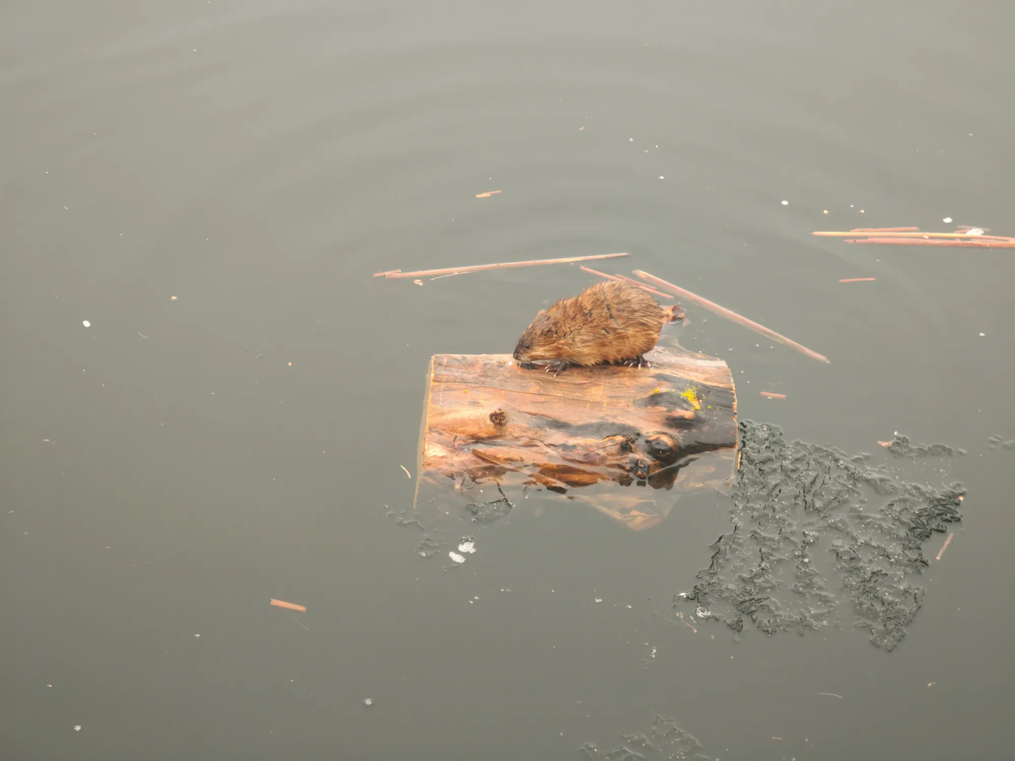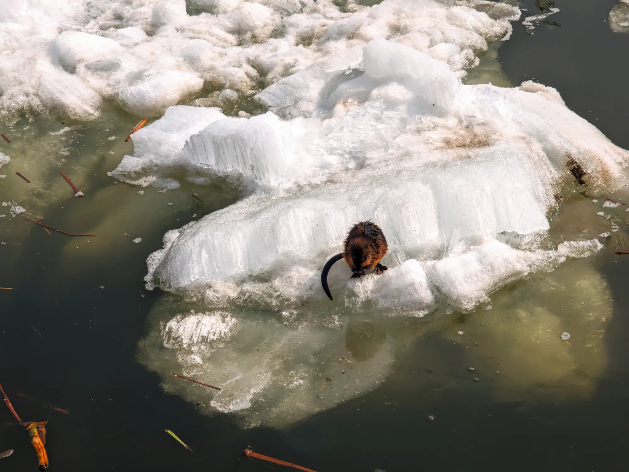 Такие дела. Встречи были неожиданные, хотя в последующие дни горожане уже были в курсе и приходили толпами поснимать зверьков на льдинах и в воде (есть даже видео с ондатрой на берегу). А дети пытались угадать, кто это - бобр, выдра или ондатра.