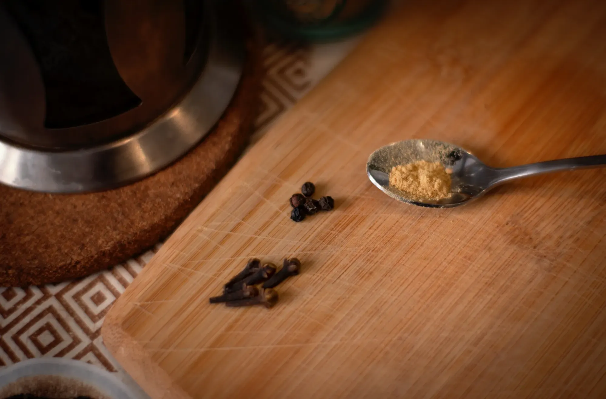 Наконец, добавляем щепотку сушёного имбиря и перемешиваем. Имбирь, тащемта, здесь опционален. С ним чай становится гораздо более пряным (и теряет прозрачность). Можно обойтись и вовсе без него, либо заменить его на маленькую веточку свежего розмарина, либо при подаче добавить листьев свежей мяты. Я, словно какой-нибудь Лазерсон, люблю считать себя крутым поваром™, так что у меня травки-приправки прям на подоконнике растут, можно всегда повыпендриваться, когда кулинарничаешь