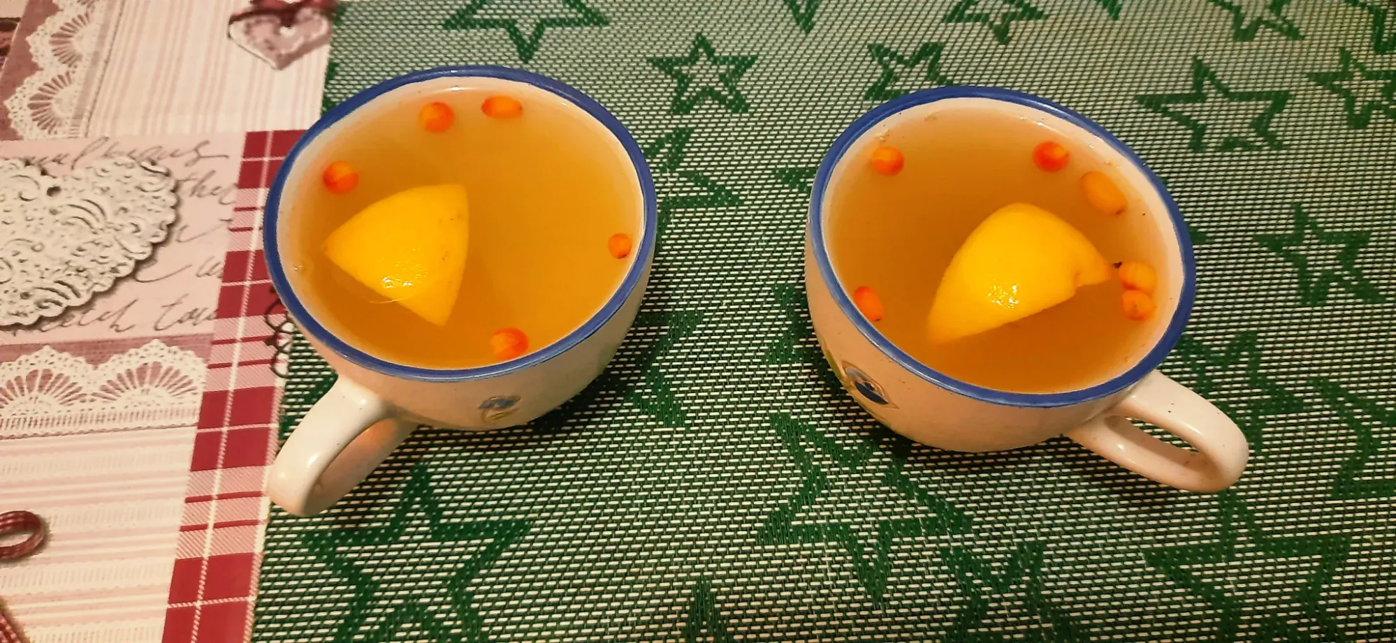И в один из таких вечеров супруга заявила мне что хочет вкусный согревающий чай. Притом, возжелала не абы какого, а с облепихой, понимаешь, как в городской кафешке, в которую мы иногда заглядываем. В составе того чая, как я припоминал, абсолютно точно была облепиха, апельсин и всякие пряности. На счёт всего остального, кроме апельсина и облепихи - будем импровизировать.