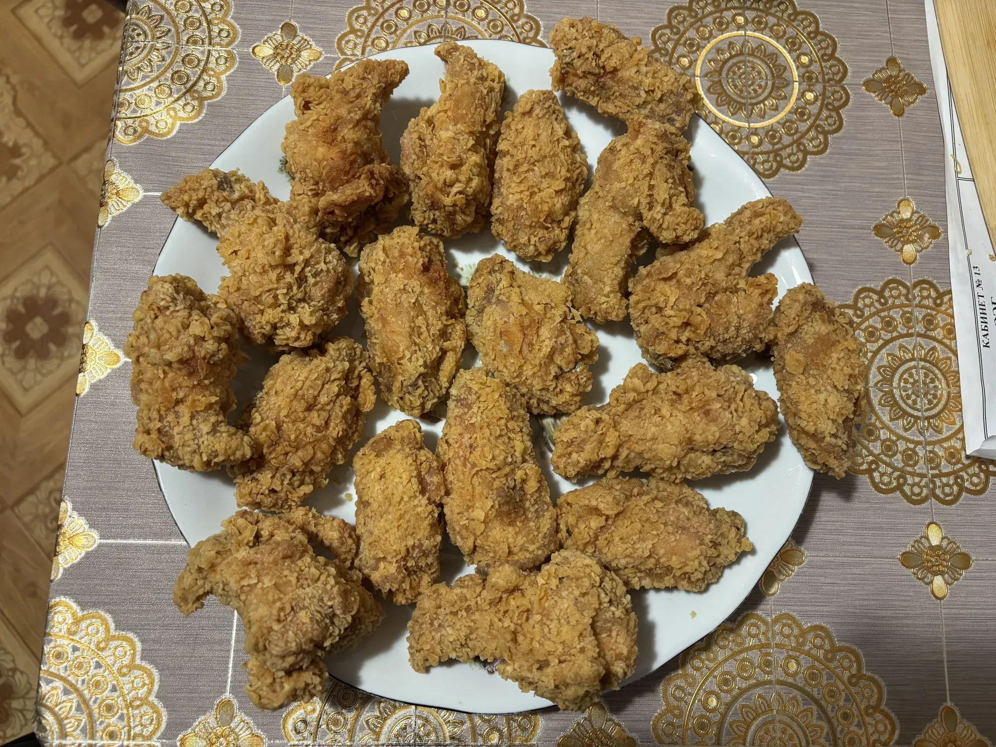 Ладно, кобры злобыне, уговорили. вот вам блин из куриных крылышек на моей любимой тарелке из сервиза "Мадонна", который старше меня лет на 10, если не на 15-20