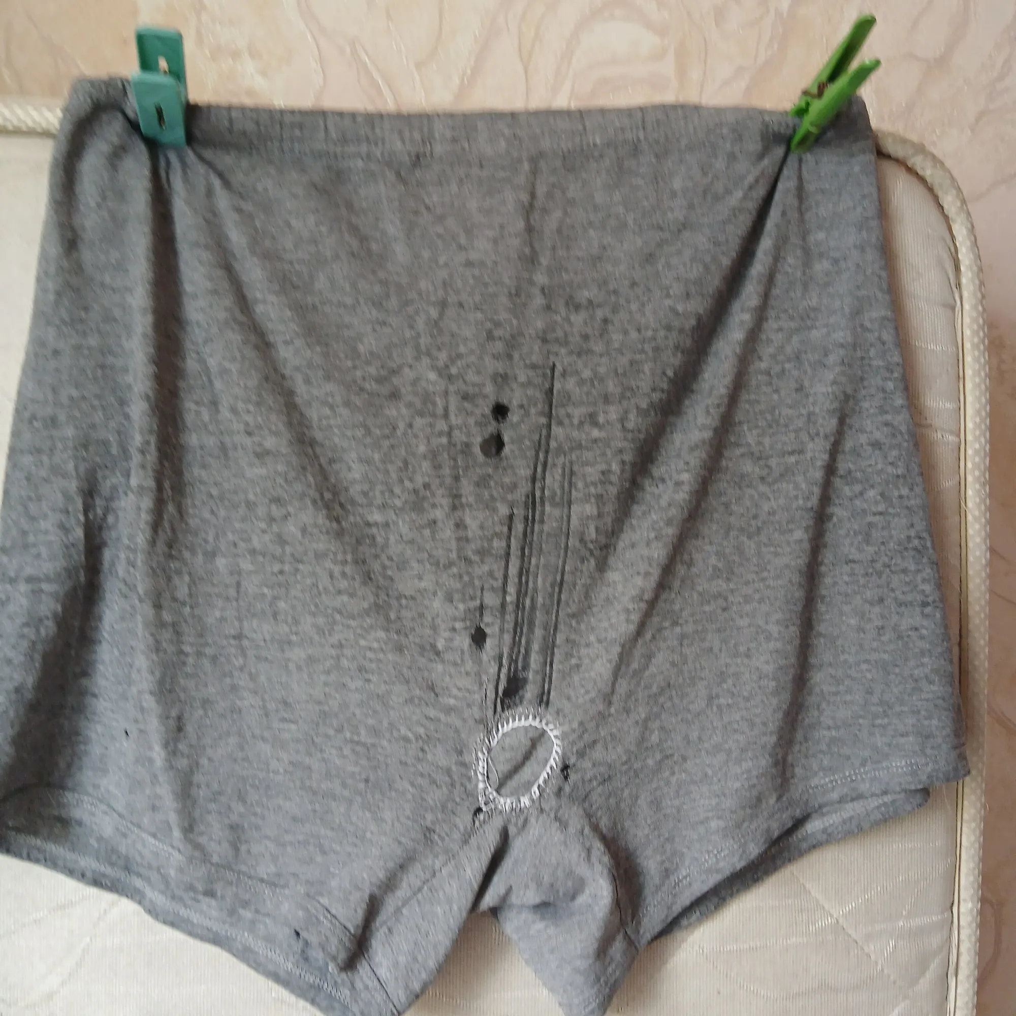 Видите там кругленько заштопано? - Вот! Лично пропердел и своими руками зашил!))