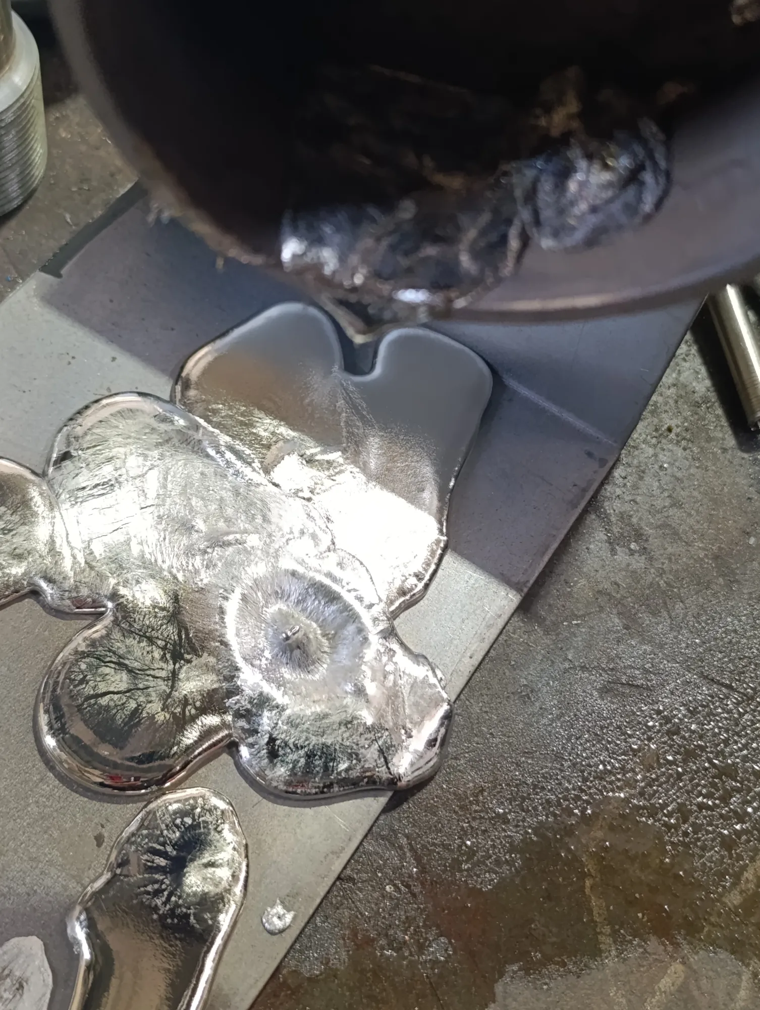 Вы можете даже наблюдать, как это все лилось мимо изложницы прямо на деревянный стол. И от этого даже было веселее и дополнительная ароматика блинам пойдет только на пользу.