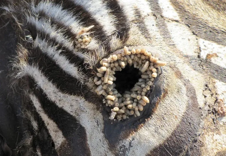 Удаление - это отдельная песня. Врачи могут удалить её хирургически, но есть и народные методы, такие что один другого краше. Например, отверстие заклеивают пластырем или заливают вазелином, перекрывая личинке кислород. Задыхаясь, она начинает высовываться наружу в поисках воздуха, и в этот момент её можно ухватить пинцетом и медленно, с мерзким хрустом, вытянуть. Другой способ - приложить к отверстию кусок сырого мяса. Личинка, видимо, думает, что принесли обед, и начинает переползать в мясо, после чего всю конструкцию выбрасывают.