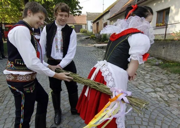 В Чехии плетут из вербы что-то типа хлыста, на конце разноцветные ленты. Эта штука называется помлазка и ей шлепают по жопе дамы, чтоб она была молодая и красивая. Но это в Чехии, в Польше совсем по-другому, там девушек обливают водой из ведра, кое действие должно им подарить молодость, красоту и плодность.