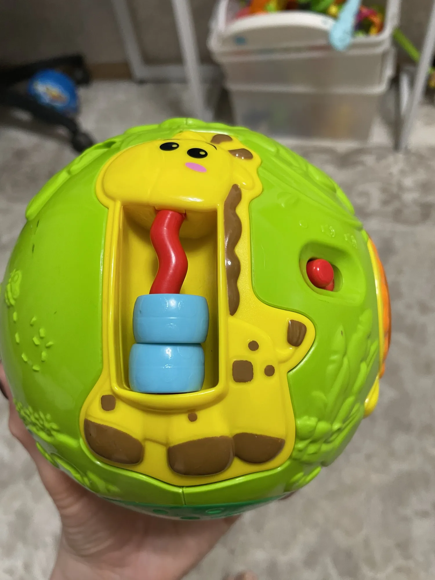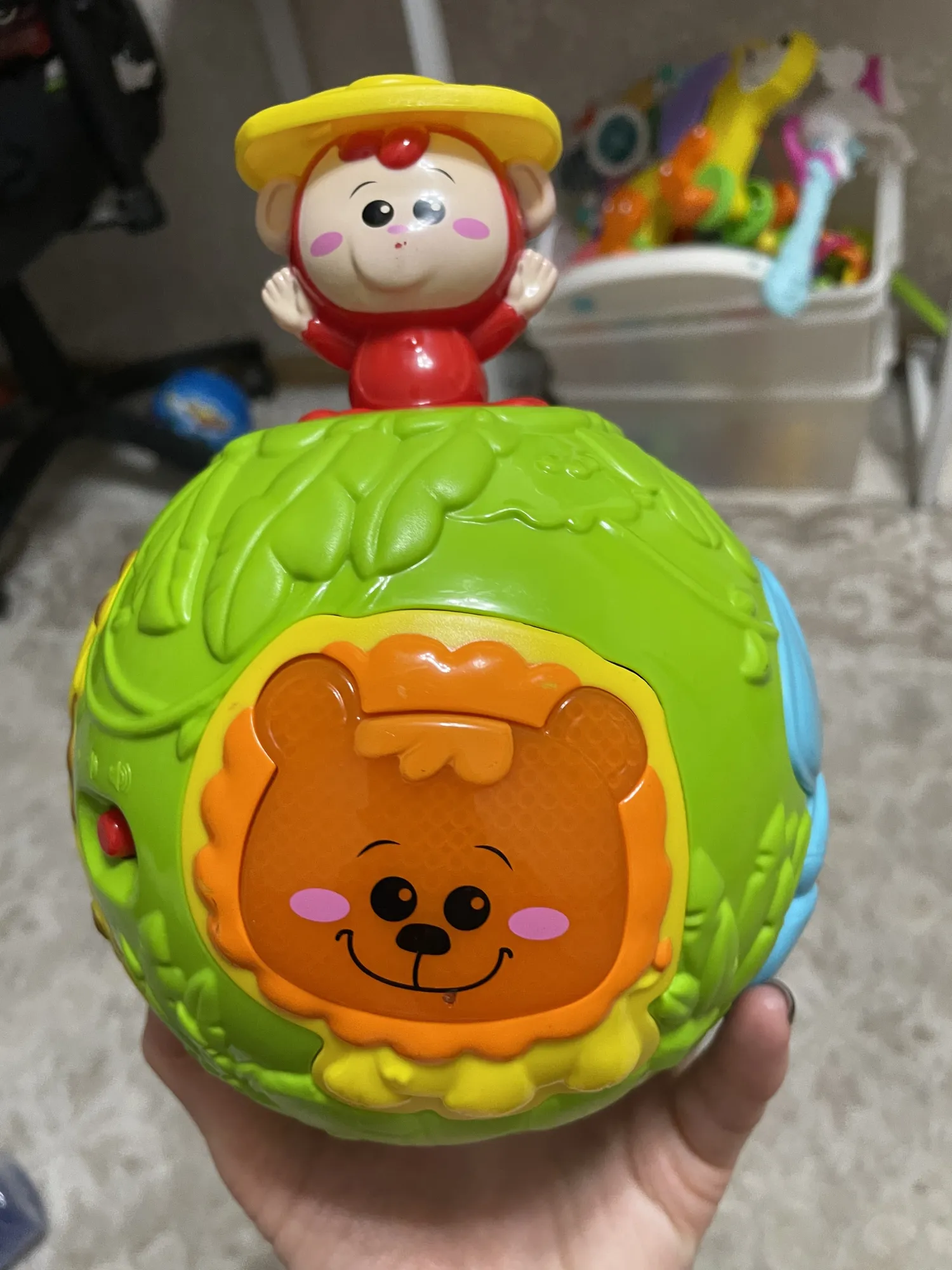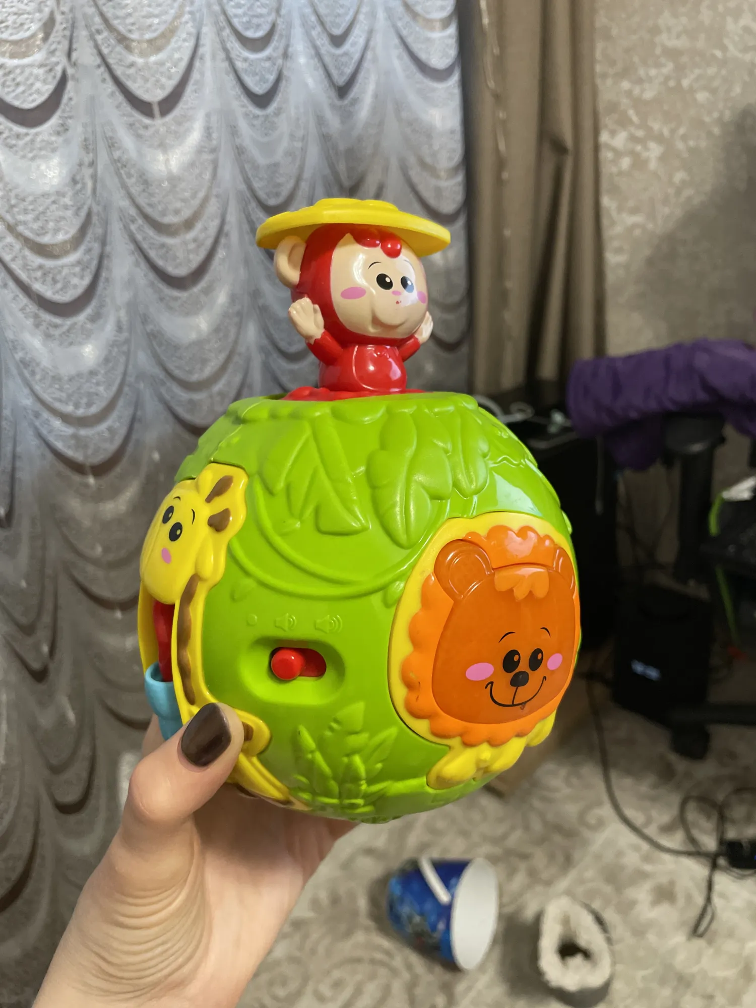 Пластиковый, неразборный. При нажатие на Льва выпрыгивает Макака