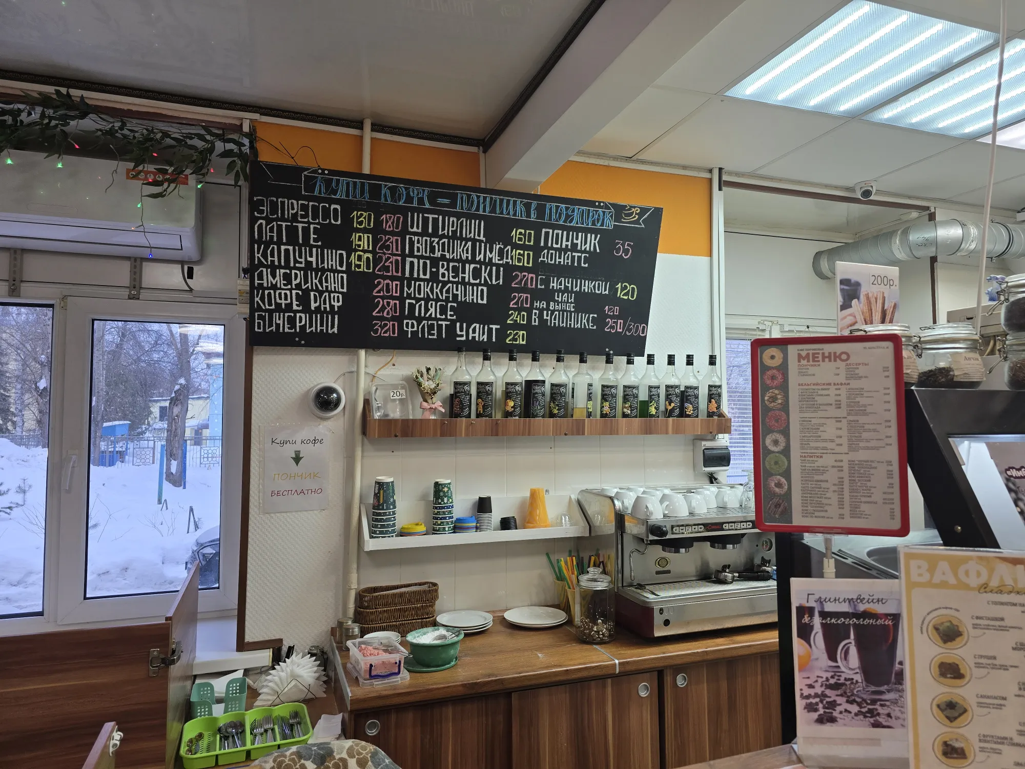 Также в меню есть обычные классические пончики - по 35р. за штуку. Когда мы пришли, они как раз готовили новую партию и предложили их подождать.