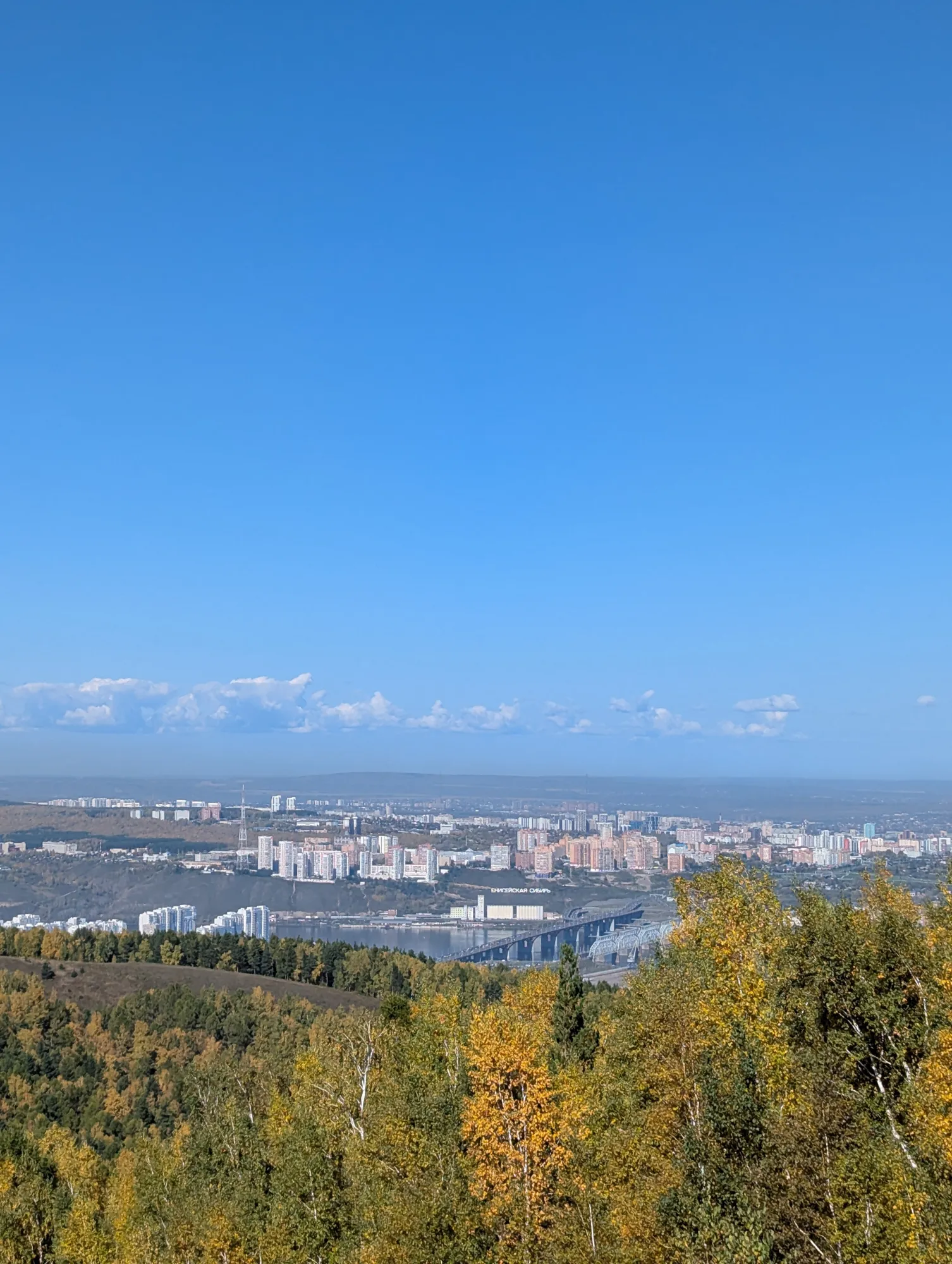 Достигаем такой высоты, что становится видно город. Да, далеко мы забрались.