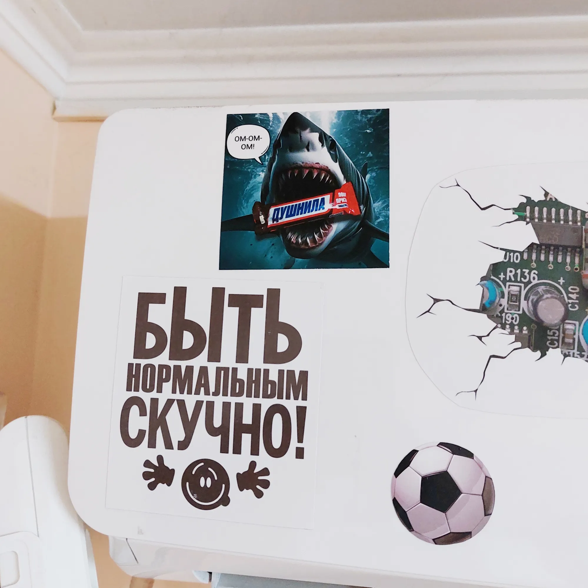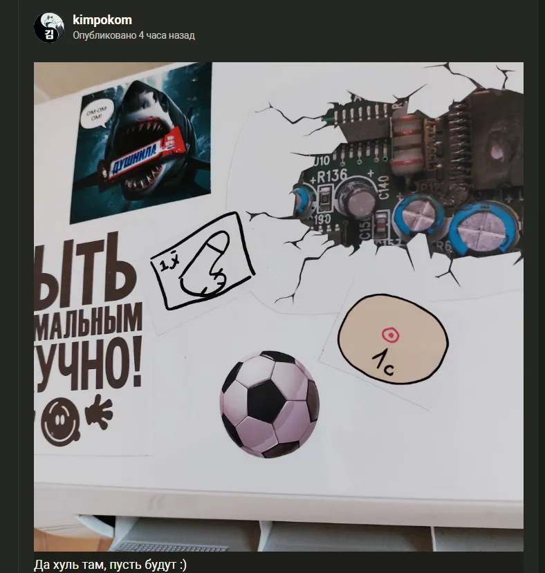 А я друзьям своим дарила на НГ-2023. Душнила и Душнила поменьше. Нормальной фотки не осталось. Это я фотографировала, что мне сделали футболки со светоотражающей надписью, хотя я заказывала обычные. А...