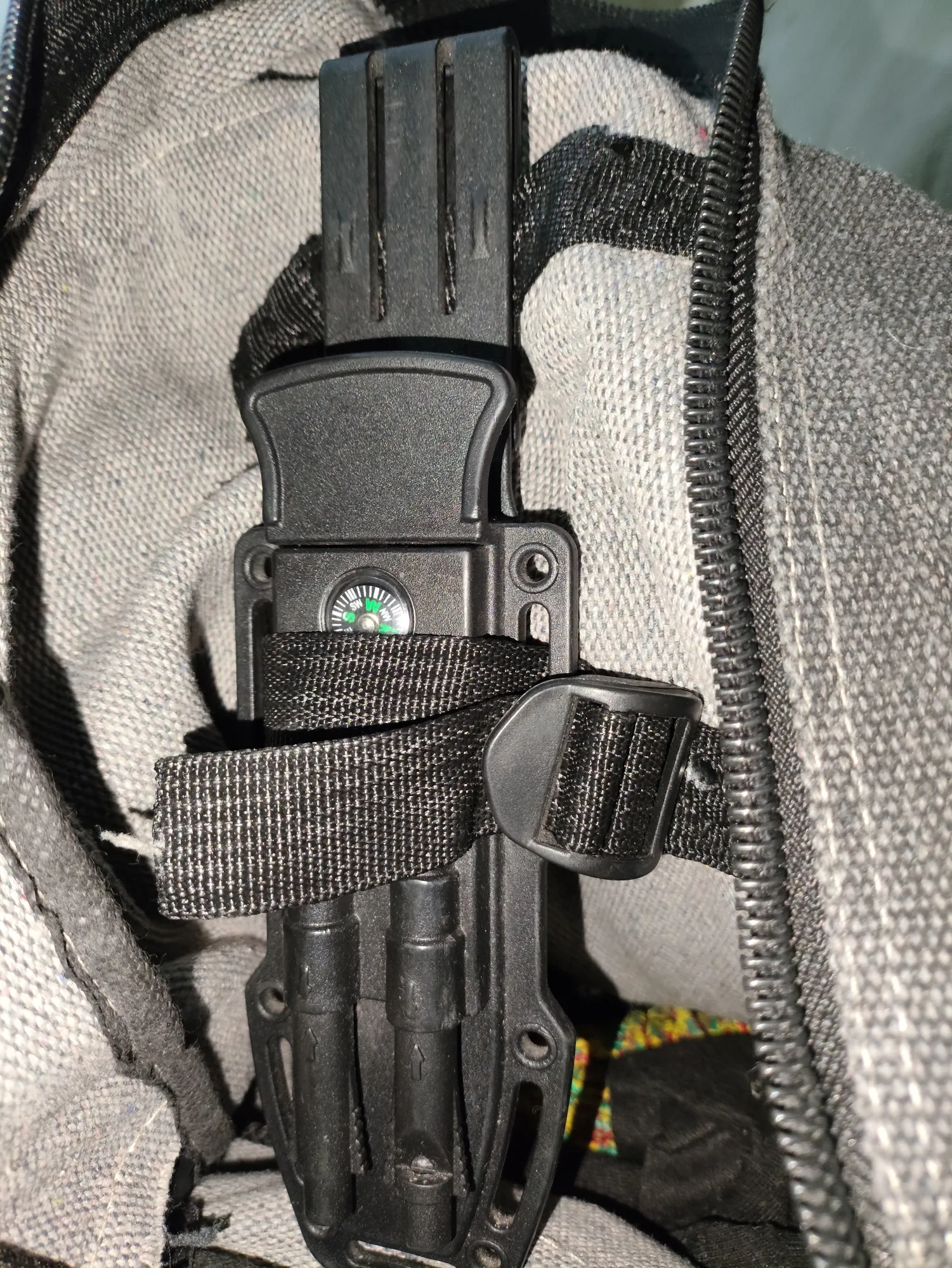 Тем не менее, он достаточно острый, у него удобные твёрдые ножны и огниво в комплекте. Ножны я вшил в основной отсек своего рюкзака, и с тех пор этот нож всегда со мной.