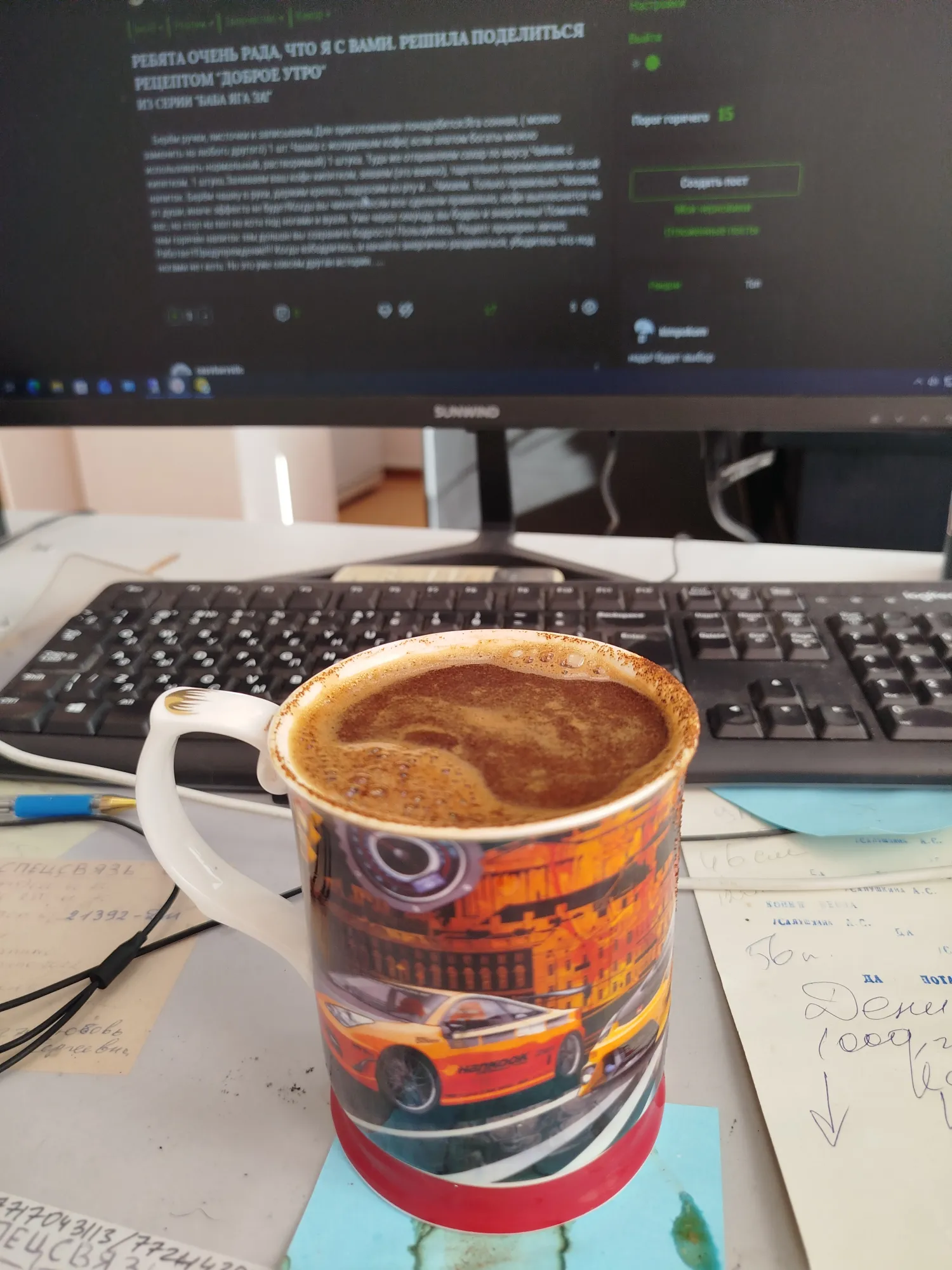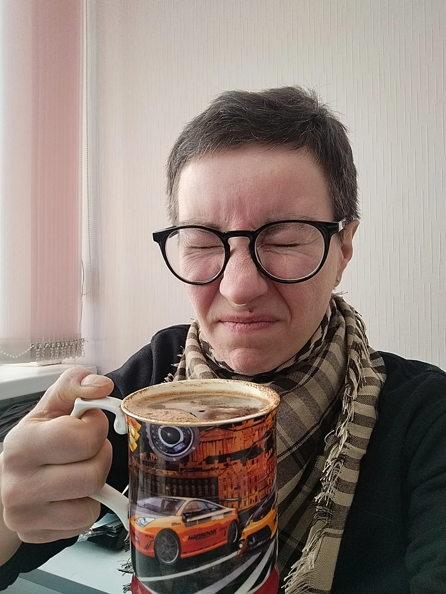 Ну про кофе я сообразила на перекрестке ближайшем, когда оно упало с крыши на лобовое. Пришлось еще потом на мойку заезжать и еще раз за кофе идти) а по пути за второй порцией кофе я уронила запасные мамины ключи в шахту лифта. Вообще день не задался тогда) я без кофе утром - натурально зомби. Мне повезло, что сейчас капучино муж каждое утро готовит)