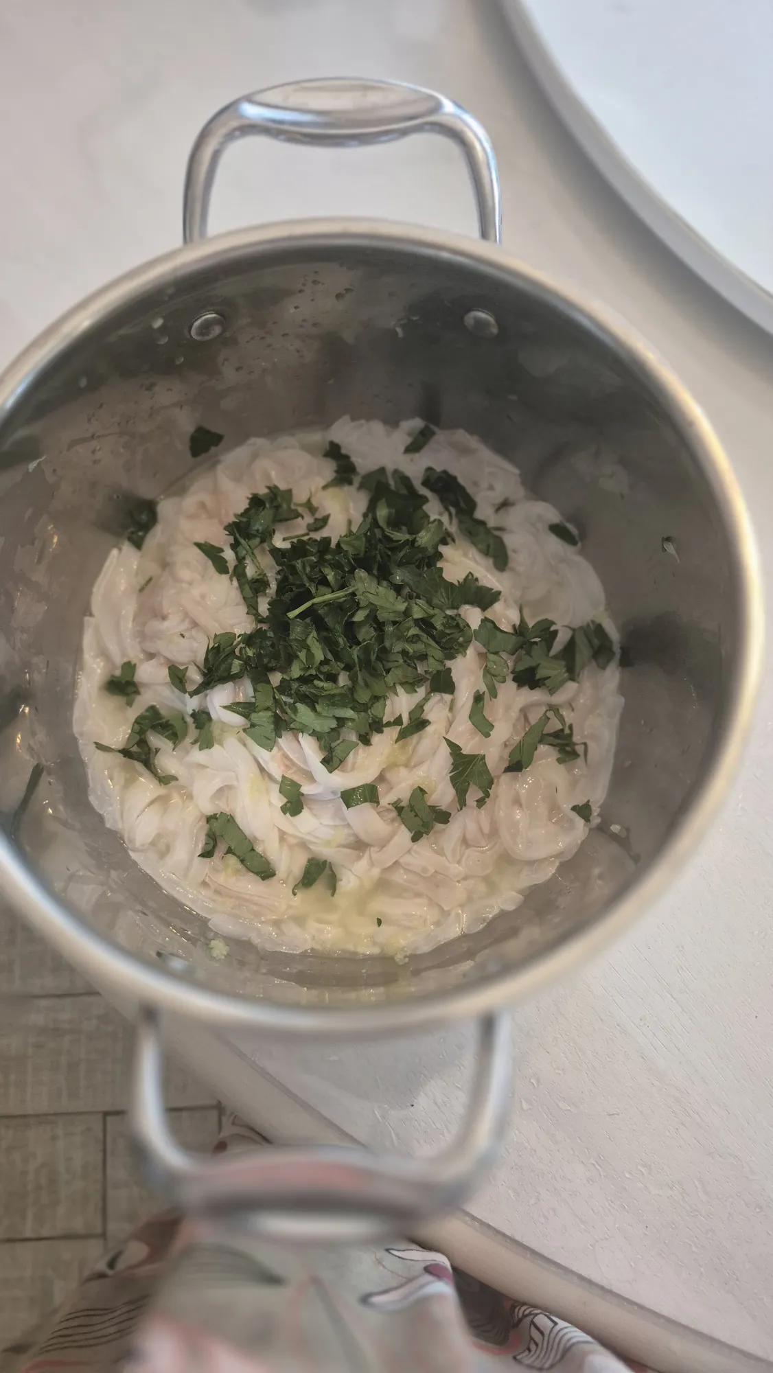 Какого то хера кальмар водянистый попался и 2 минуты которые он должен жарится он тушился. А морепродукты нельзя долго подвергать термической обработке. Так что выпариваем лишнюю влагу и убираем со сковороды.