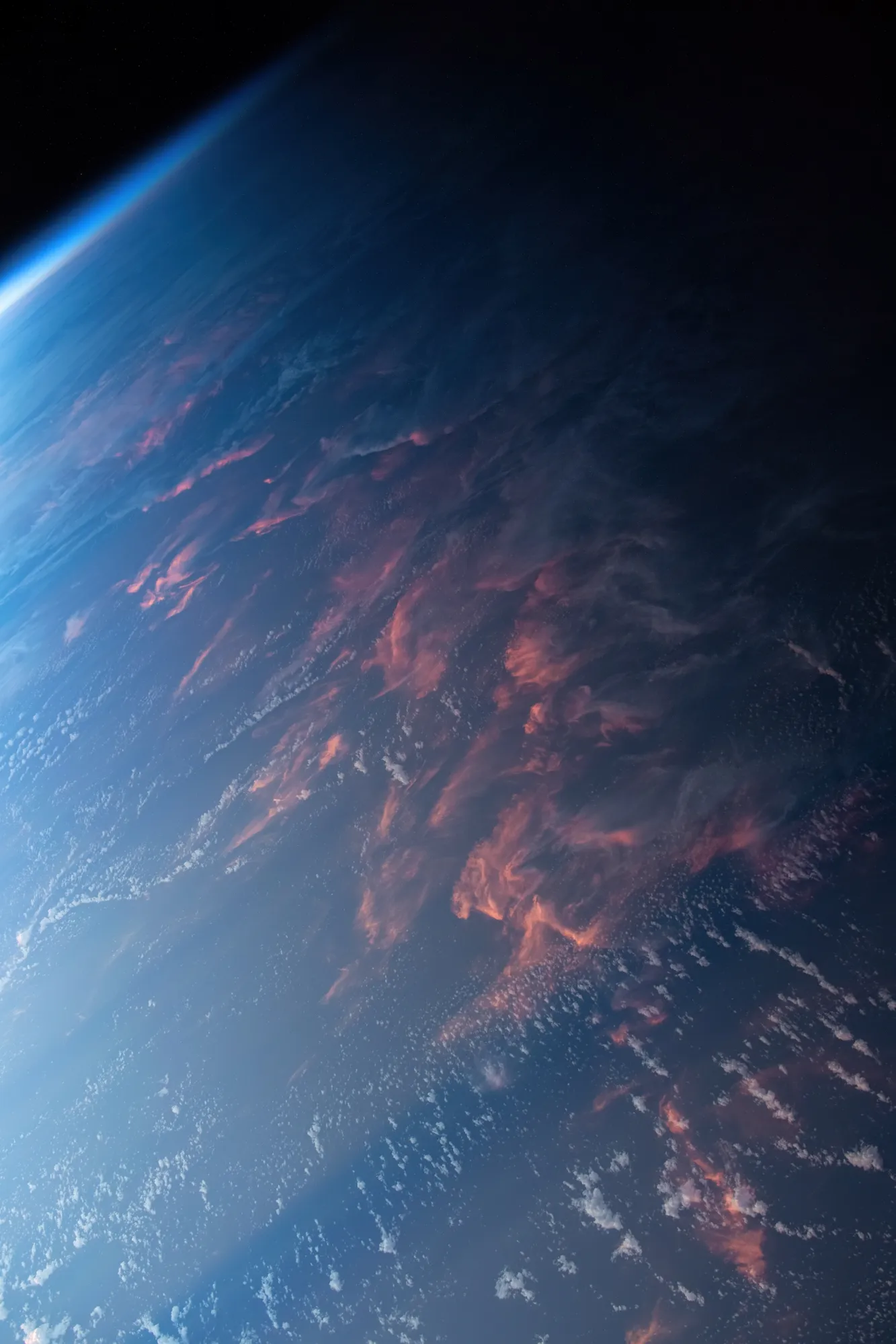 Интересно, что с МКС закаты/рассветы случаются очень часто — примерно каждые 45 минут, потому что станция облетает Землю за полтора часа. Поэтому космонавны видят эти красивые переливы цветов много раз в день. И хотя физика явления та же, что и на Земле, вид с орбиты даёт интересную перспективу: ты как будто смотришь на край планеты, где день плавно переходит в ночь, и облака горят таким цветом.