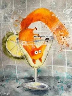 Что налито в бокал, сказать не возьмусь – может, лимонад, а может, что и покрепче. В конце концов, лиса взрослая, сама разберётся :)