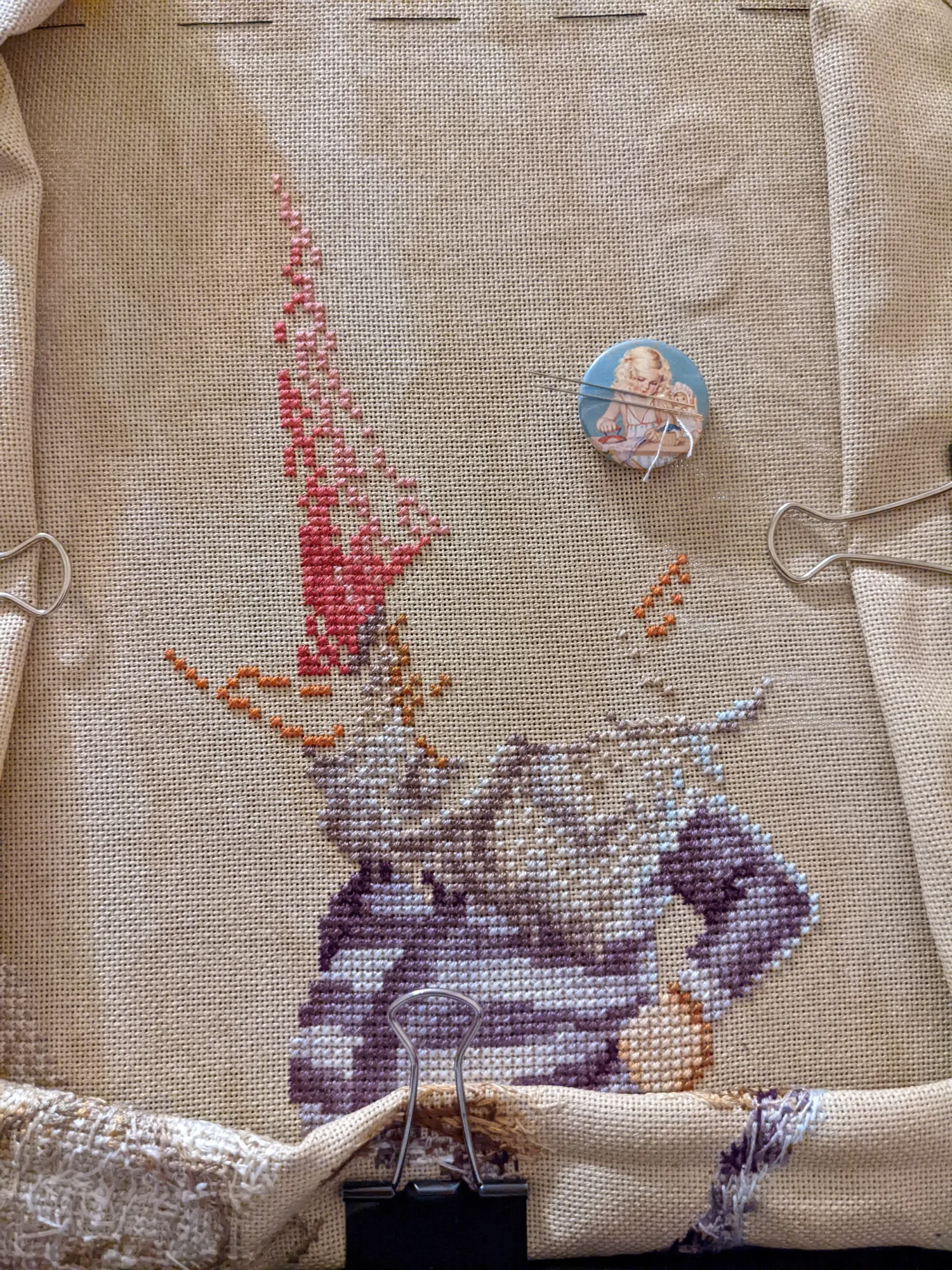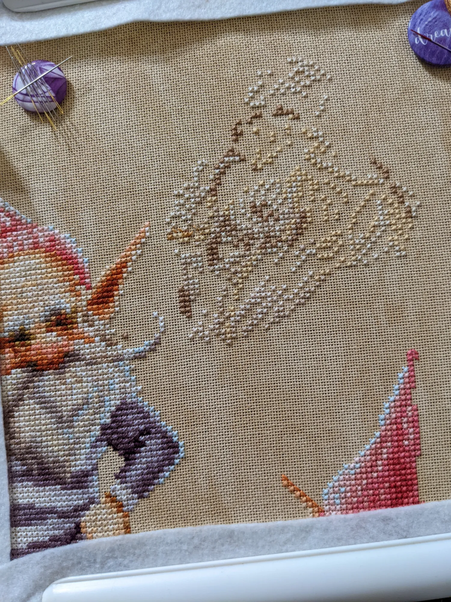 Вот тут я пыталась вышивать на квадратных пяльцах – мне не понравилась натяжка, так что я довольно быстро вернулась к своим любимым снапам, а пяльцы эти отдала.
