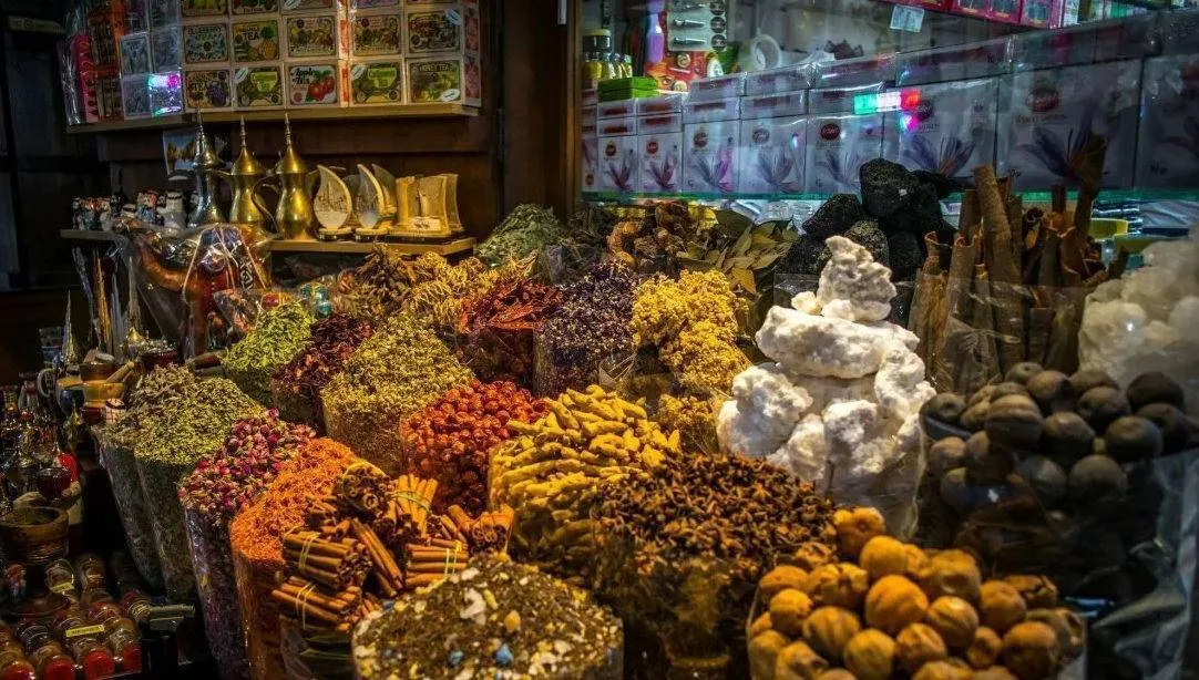 - Звёздчатый анис (бадьян) — несколько звёздочек, расположены справа от кардамона.