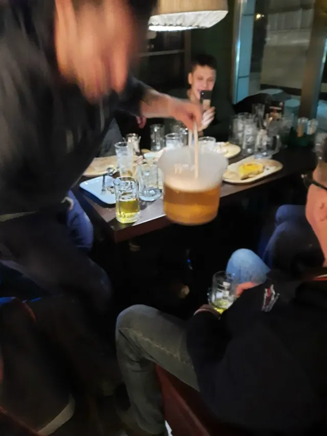 Они попросили им пиво налить, в итоге им налили в ведро скольки-то литровое и дали трубочку и мы мирно разошлись)) (фото не могу найти. Позже попробую ещё раз)