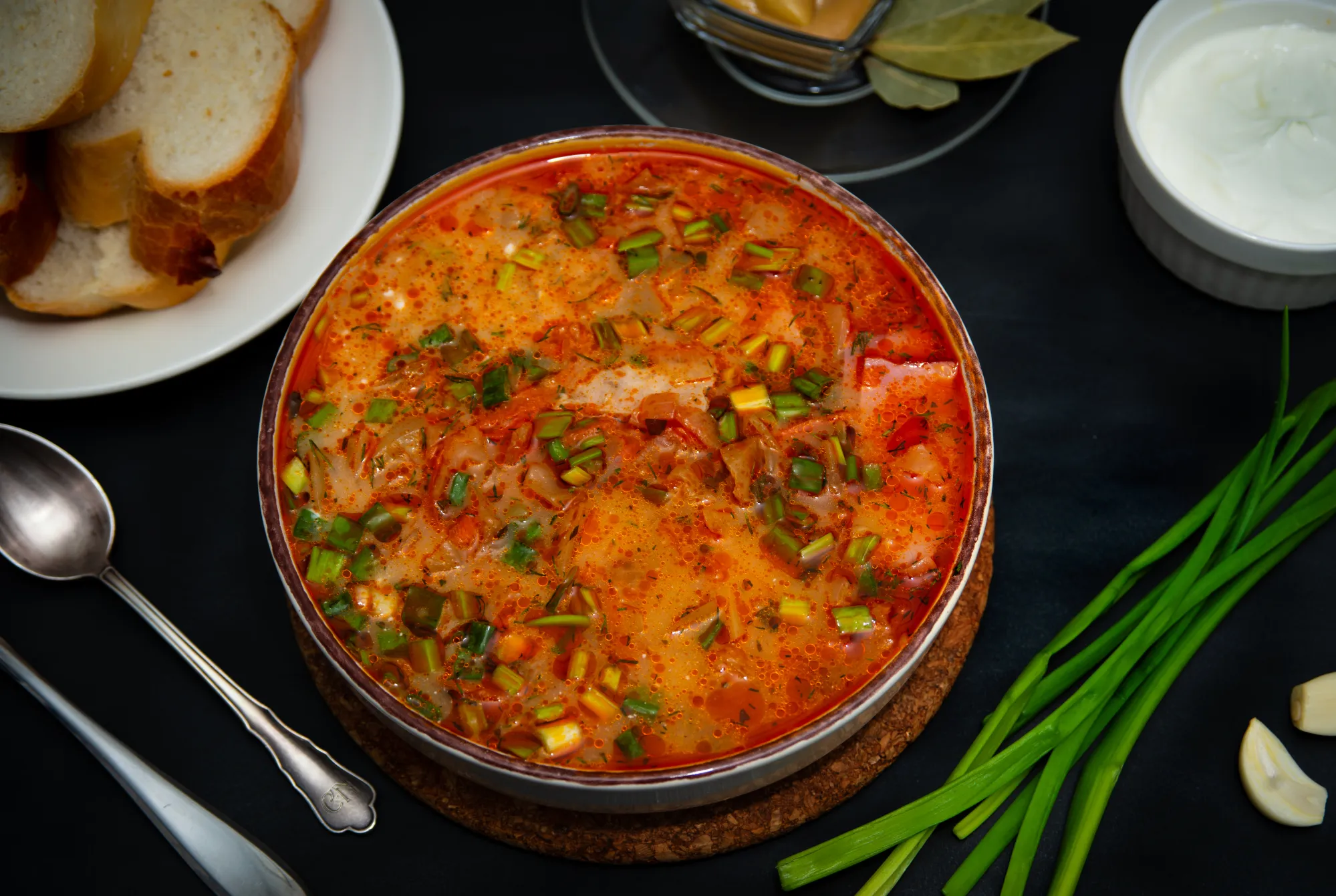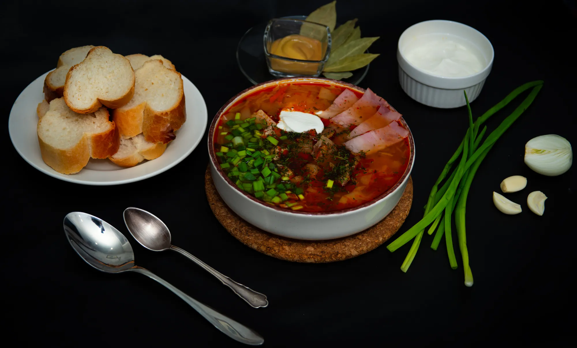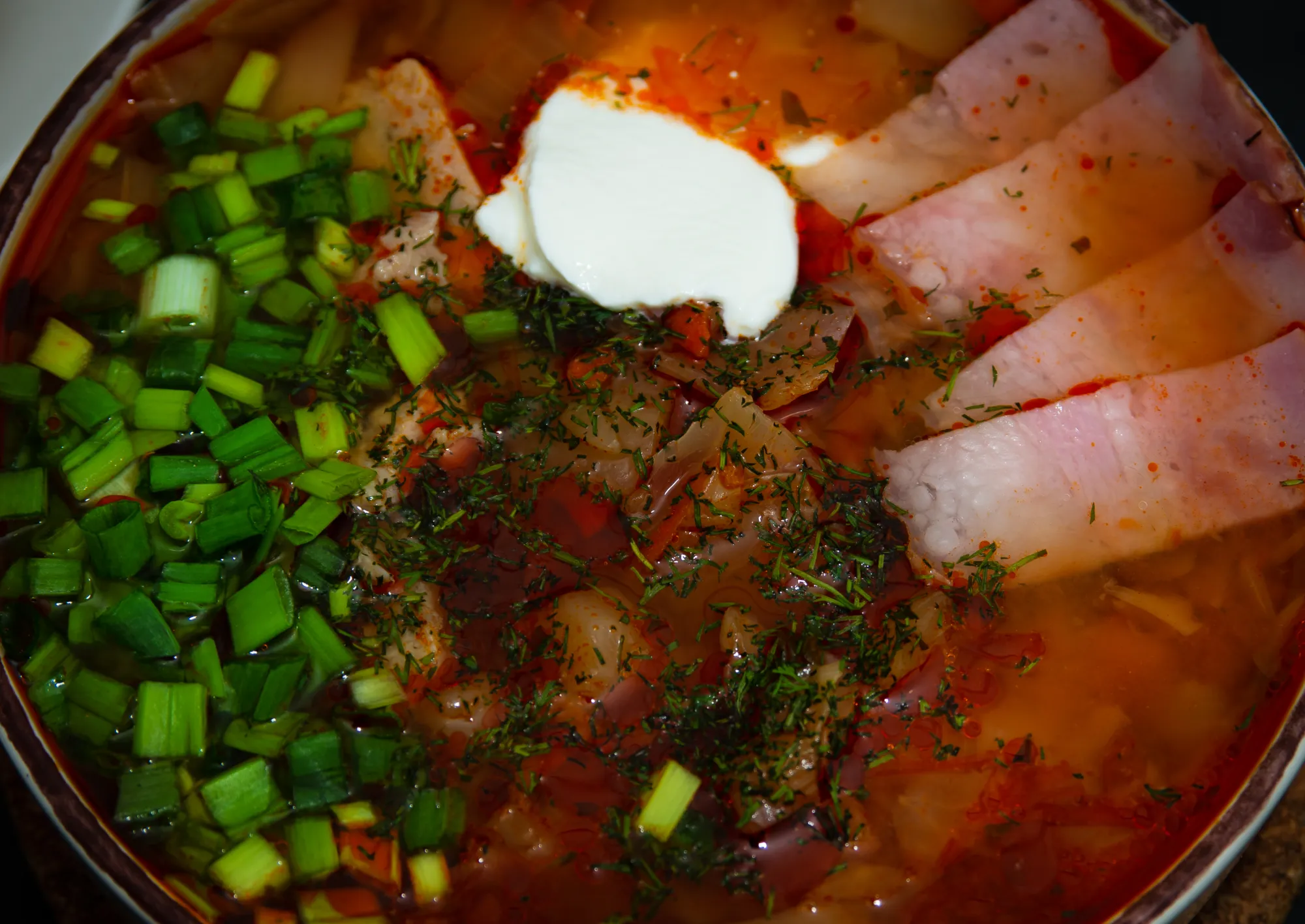 Накрываем крышкой, даем постоять 20-30 минут и можно подавать. Подача обязательно с хлебом, сметаной, горчицей и свежей зеленью. Можно с бекончиком или грудинкой! Чеснок вприкуску тоже хорошо. У меня суп на курице, поскольку супруга не любит мясо. Но себе я так же отдельно добавляю в тарелку свиной тушёнки или грудинки. Ибо какие щи без свинины? Пусть даже и бульон неполноценный😁 А вообще, варите сразу на свинине, и не извращайтесь, как я:)