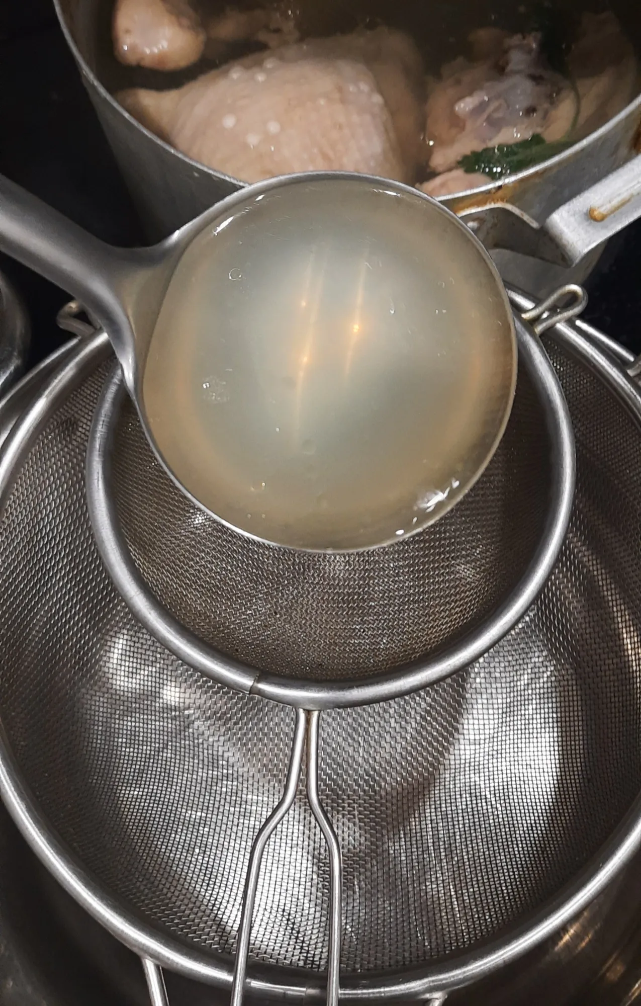 Пока ковырялись, уже и бульон сварился. Процеживаем его обязательно.